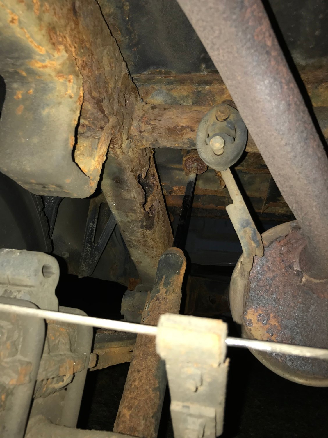 So I started hearing this noise today when I go over bumps and when I got home I looked under the truck and saw the rear left shock mount for the frame ripped off. The shock is extended and rubbing on the underside of the bed. I’m not really sure what to do and this post is more of me venting rather than looking for answers I think. It’s a great truck of course, runs perfect, gets the gas mileage that it’s supposed to and looks great doin’ it. Just the frame is getting worse and worse.