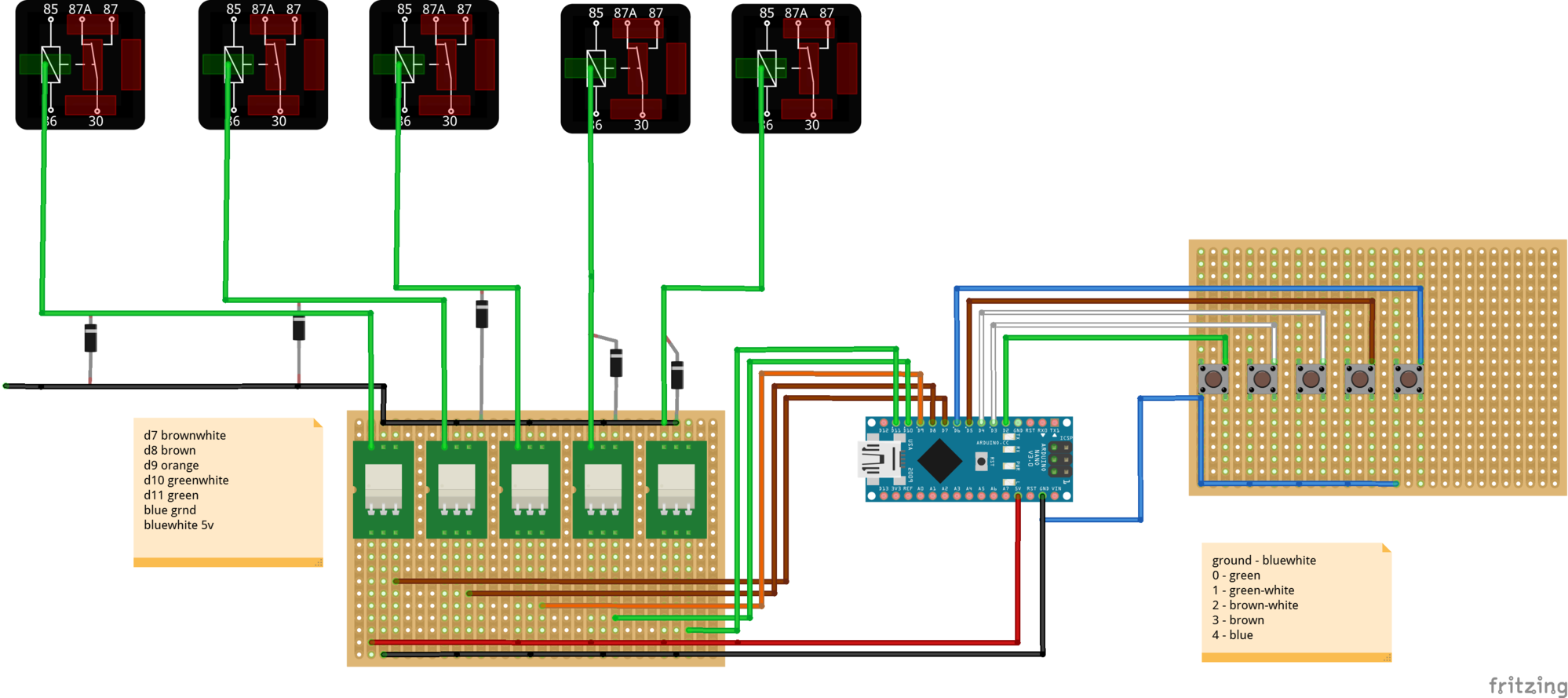 I figured enough was enough so I decided to get out my soldering iron, an arduino, some wiring and some spst relays and redo it.