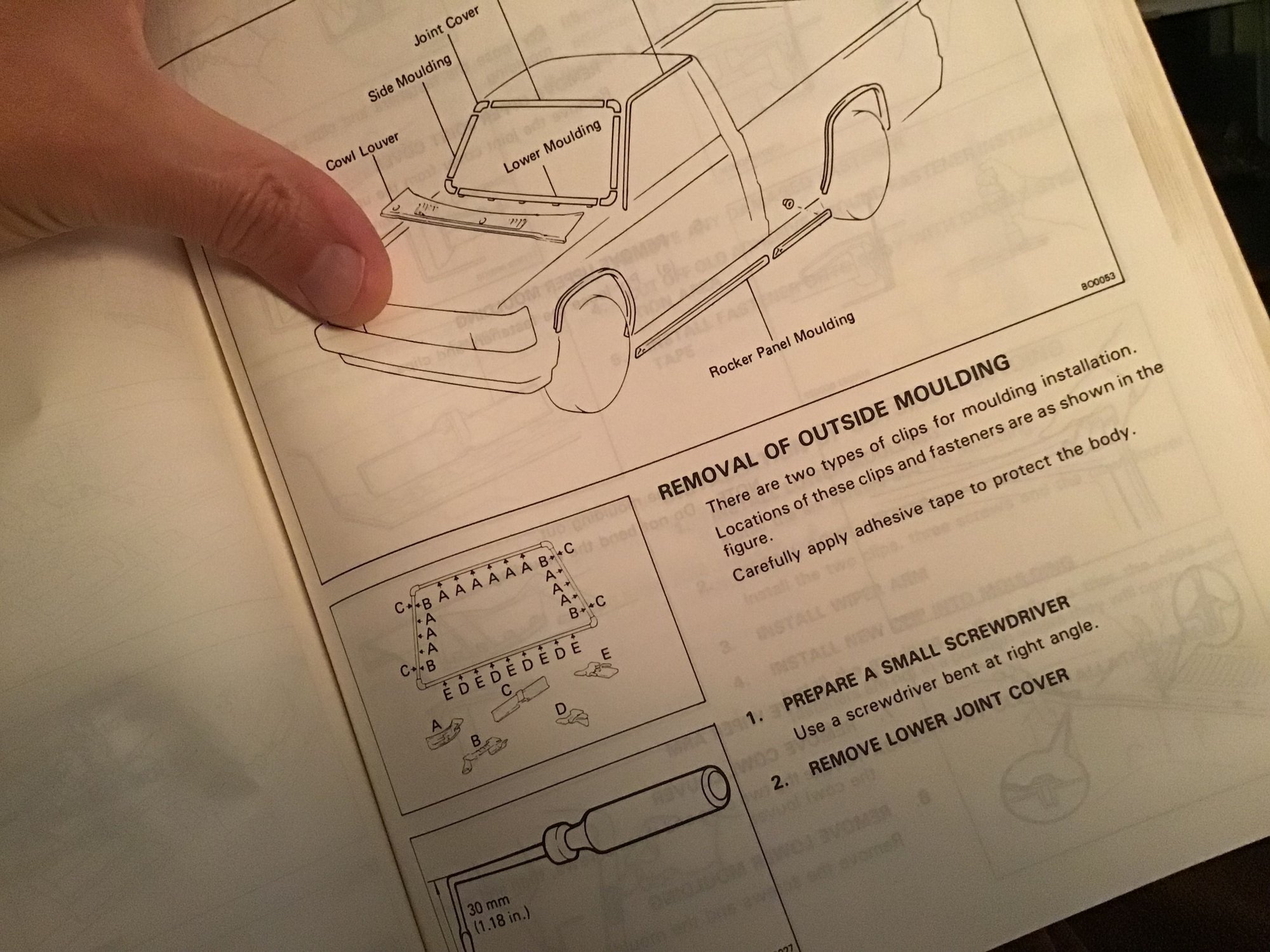ill dig into my manual this weekend thanks, i glanced through it but didnt see this page. i was aware that there was a "molding kit" you could buy separately but i saw inside the wrapping that the trim pieces come with the clips installed on them already if you buy them. i most likely will not get a chance to attempt the install until next week, im a mill worker and we are doing a maintenance shutdown. sucks to sucks haha.