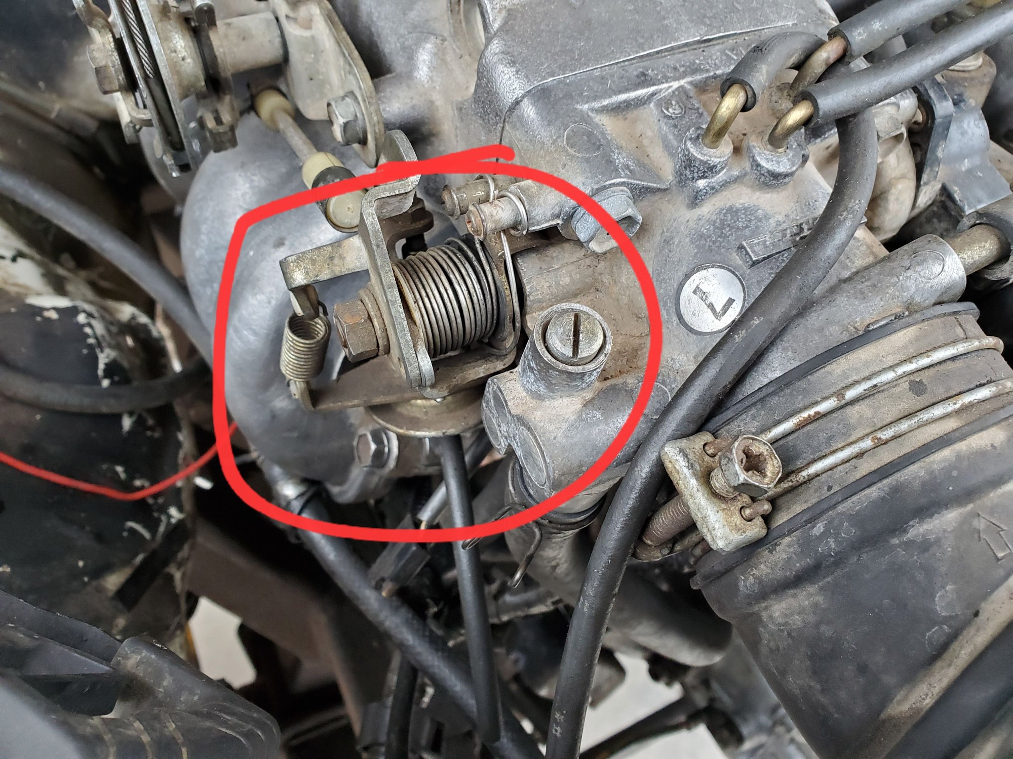 So I've got a bit of a problem, I just put in a rebuilt engine, everything ran good so I drove it down the the post office. On the way I noticed it was a bit loud and boggy at certain times so I went home and adjusted the valve lash and the idle smoothed out and the truck sounded good. I went to go on another drive and the throttle began sticking so I stopped and started tinkering with the cable, I accidentally revd the throttle up real high and the truck began running like crap. I got my timing light back on it and the timing was jumping everywhere! It was sounding so good now the timing is all over the place and wants to die. Below is a picture of what I was messing with in an attempt to get my throttle cable to come back down because it was sticking. What do you all think could have happened?