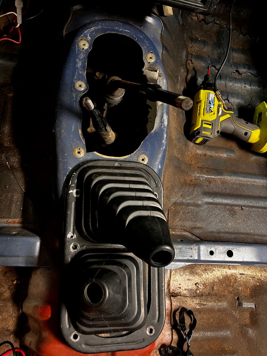 Purchased an 86 4x4 truck with an unknown suspension lift and an obvious body lift. Working through some wiring issues and previous owner debauchery... question is what have you used for a shifter boot. The factory boots are intact for the manual transmission and transfer case, but as installed will not shift in to low range. Picture included. Probably an easy stupid question but i have scratched my head too many times on this one today.