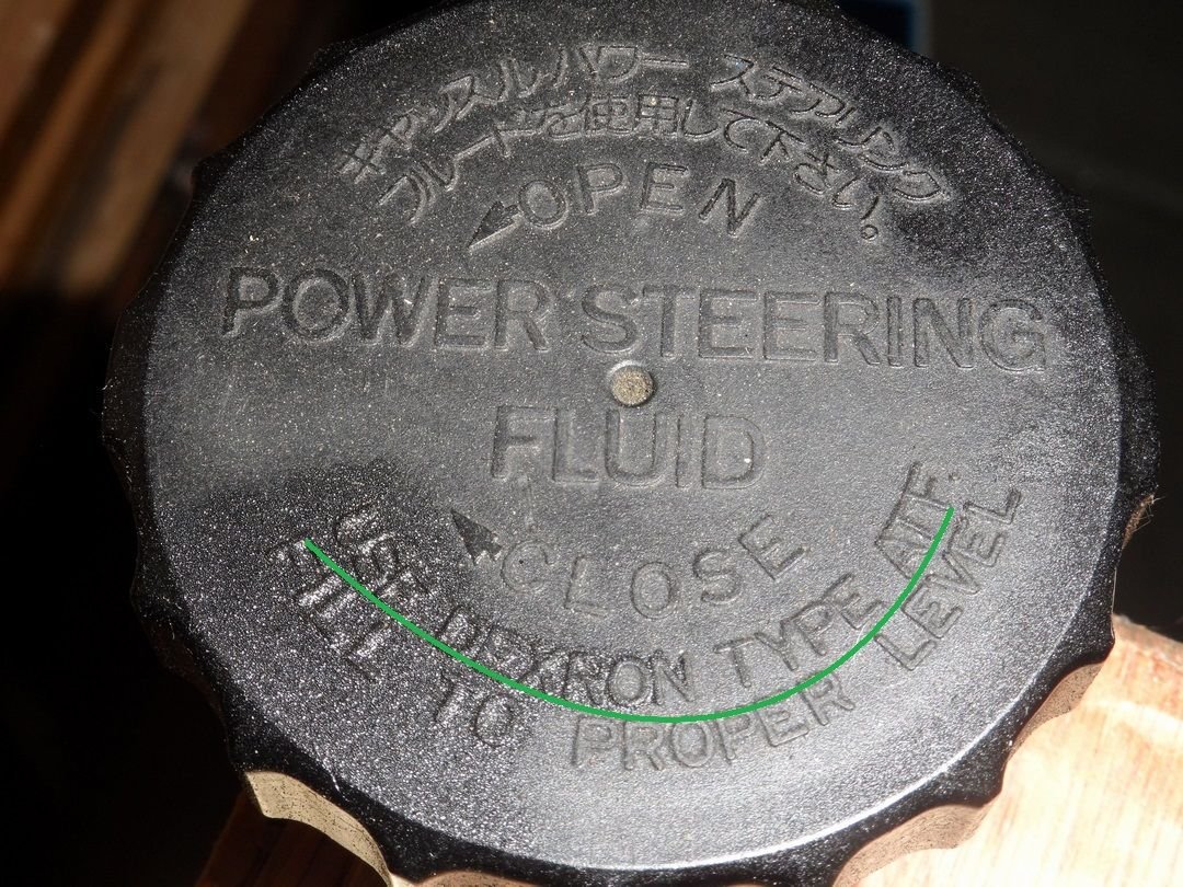 the 22re used a different pump reservoir than the 3vze. metal body, metal cap with a big T embossed on it. but, either way, ATF is the fluid of choice and the old sticker stated that (on the metal body). these were mounted on the fender, not on the block as for the 3vze. the pump itself could be the same, but i haven't looked into that.