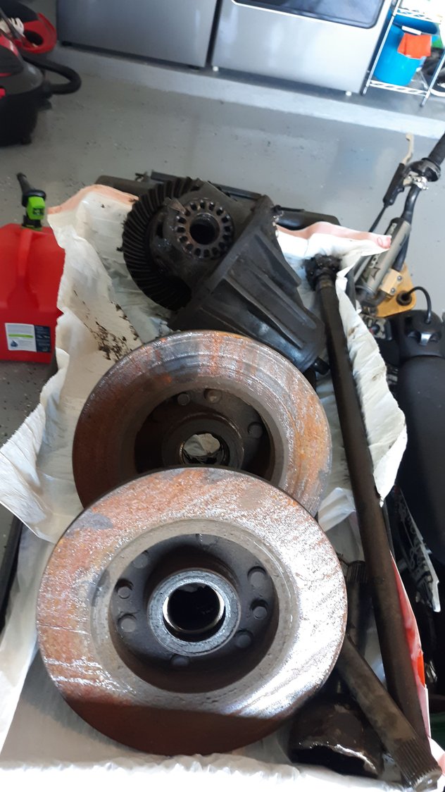 I'm doing an sas on my 86. The axle I'm using is from an 85. But the third member has an abs line hooked up. The 4cylinders didnt have abs did they? Isnt that a v6 third then?I've attached some pictures of the axle. I could get more if needed. I havent started doing gears yet as I'm still cleaning and getting the axle ready for truss and gussets. But I wanted to get my info right since I'll be ordering parts here soon. I do know that I'd need different carrier bearings if it is a v6 third so it can fit the 4cylinder housing. Thanks for the help. The day i picked it up Laid out ready to be stripped Hub assemblies, rotors, axles, and 3rd out