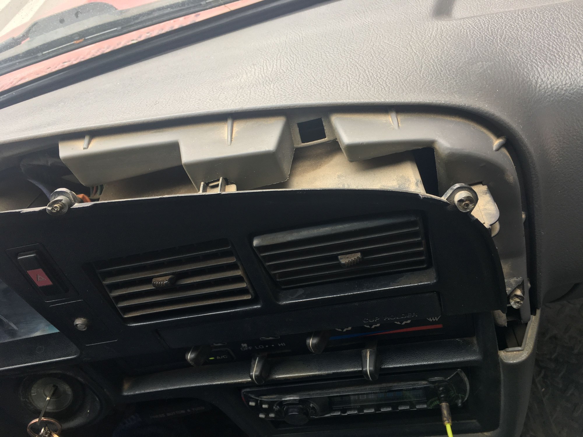 You have to remove the big black bezel and attach it to the trim piece and then install it as one unit. There is one more screw holding the bezel on that is behind the upper right of the temp control panel. So you will have to remove that panel first to get to that screw. Just pull the 4 knobs off and that temp panel comes right off. Hazard light switch, dash lamp dimmer, clutch bypass switches will all have to come out too. The 2 right vents will stay attached to the bezel when you remove it & the one to the left of the steering wheel will stay onto the duct.