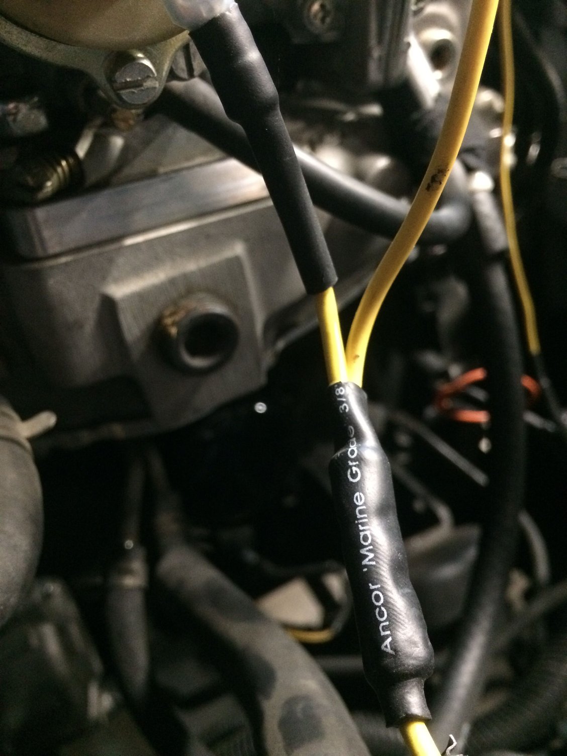 Used tools and electrical connectors I have available. Cleaned the wire, installed a shrink-fit connector, using my "pro-Crimper" I use for crimping spark plug wires, crimped the connector then used heat gun to shrink connector to wire, used shrink-fit sheathing over the repair gave it a few heavy tugs and so far all is good???