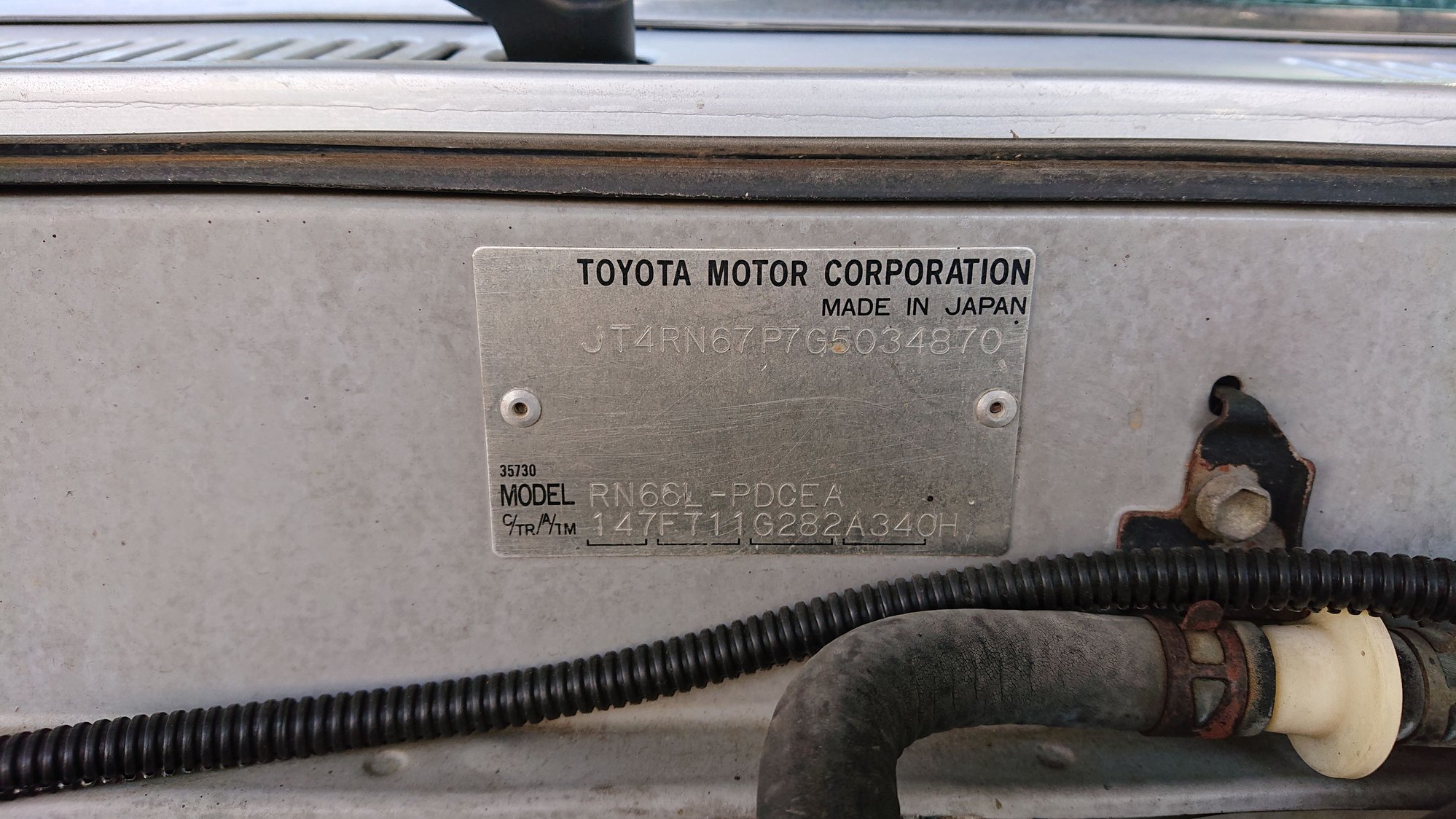 I have an oddball truck (I think) which has me confused about which torque converter is correct for the intended application. It's a completely stock 1986 4x4 xtra cab pickup with a 2.4L 22R-E factory-mounted to a A340H auto-transmission. According to the Aisin transmission wiki, the A340H transmission was installed in Toyota's 1988-1995 Pickups and 4runners but only with the 3.0L 3VZ-E V6 engine. I don't know how one ended up in my truck from the factory back in 1986 but it's there and they stamped it onto the firewall plate (see pic below). The '85-'95 2.4L 22R-E should have the A340F transmission if it's an automatic, which is exactly the same as the A340H except the shift selector linkage is mounted 90-degrees offset (F is on top and H is on passenger side), the H shares fluid with the transfer case, and the H is a bit more beefy, however they both can use the same torque converter but they're listed with different stall speeds.