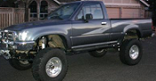 Maybe try Total Chaos or Downey...not too sure but they may have some long travel kits for the front and maybe do a spring/shackle lift in the rear and top it with a 1"-2" body lift. Like I said, not too sure but check out those places...there may be someone else on here that know too.