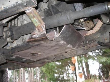 I ran a trail in Oregon last summer that made me a bit nervous about the factory joke of a skidplate. Then a friend caught his skidplate on something which ripped open a spot weld on the pan and dumped his tranny fluid. So I finally found the time and the metal to make a real bash plate.