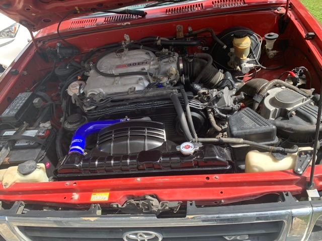 Finally picked up my Pickup after it was down for about 6 months for a Headgasket. While it was down I purchased a CFS Radiator and Cap. The original radiator had lived in the truck (apparently) since birth so I decided I would replace it all the way. Plus I got it cheap on some kind of deal on Amazon 150 bucks. (I think someone bought the wrong one and then relisted and sold it), But it was new. I also scored a similar deal on HPS Hoses. I picked up a new thermostat and few other things while it was down. This was at 197K.