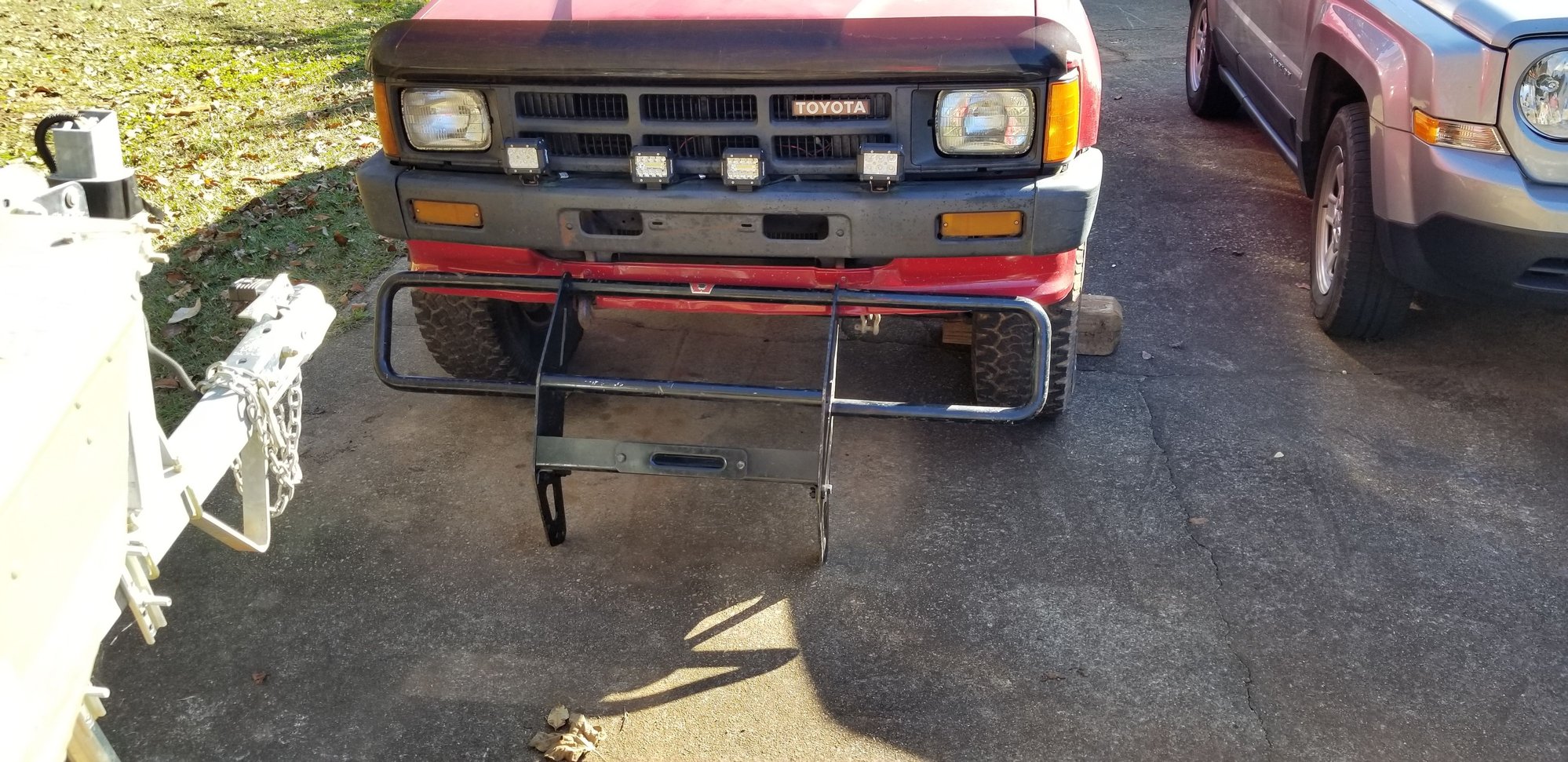 Found this for a tacoma, but I believe the bracket design is close. I believe they mount under the tow hooks. Looks like you could make that bracket with some strong angle iron.