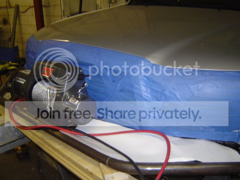 The front bumper and skid plate is about to be done, here are some progress shot of the New 9.5TI going on with synthetic cable, this truck is going to get used so it has to be able to get out of a jam... The bumper will fit perfect up against the fenders once its atached to the the frame... We want the winch up high so nothing can take it out while he is catching some air and hits at full bump, and hit something to hard causing winch failure.... More pics coming ASAP.. Later R&R OFFROAD...