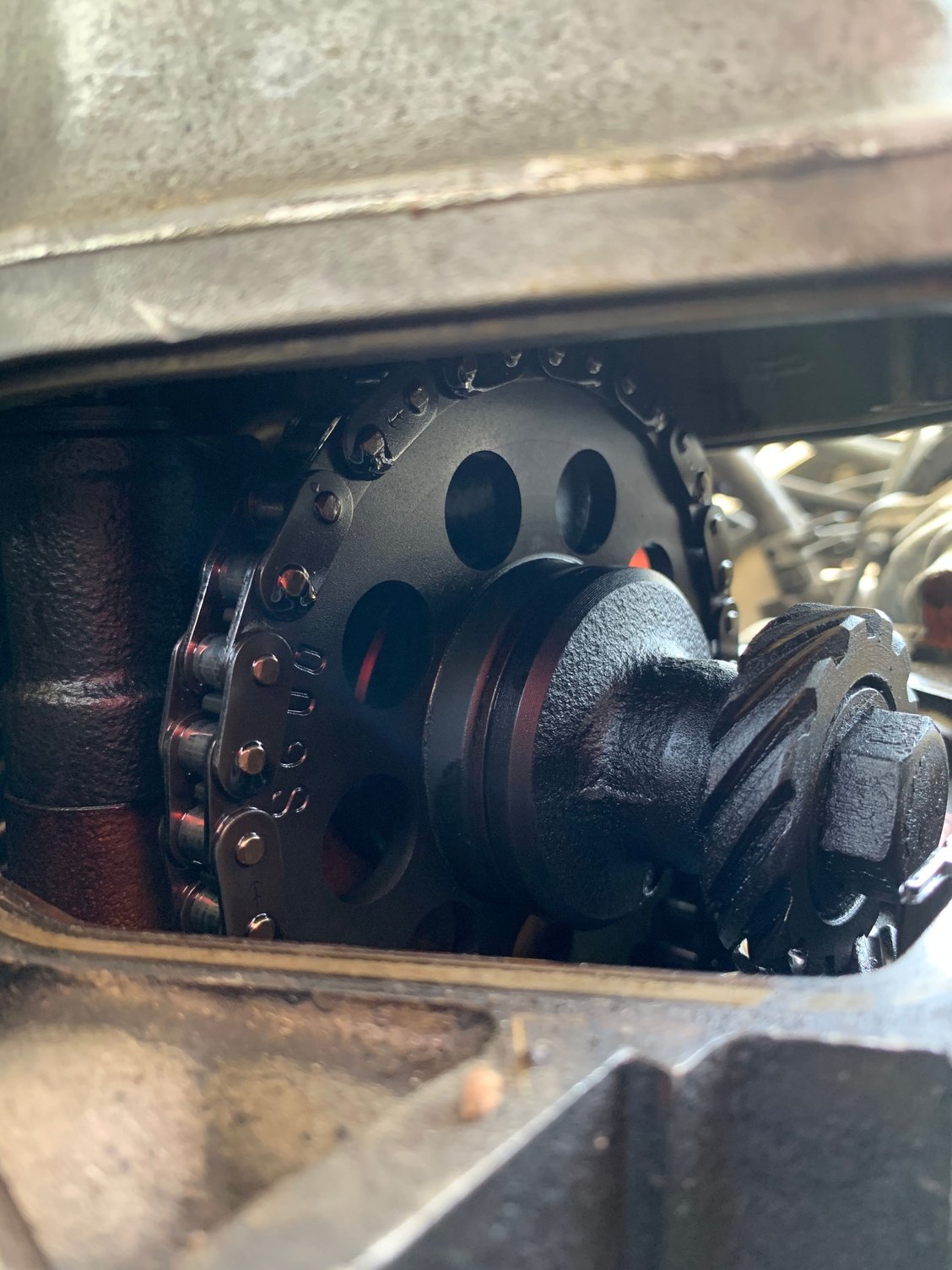 -lifted the valve cover and manually spun the crank to make sure the timing chain was in 1 piece, it looked good and was intact.