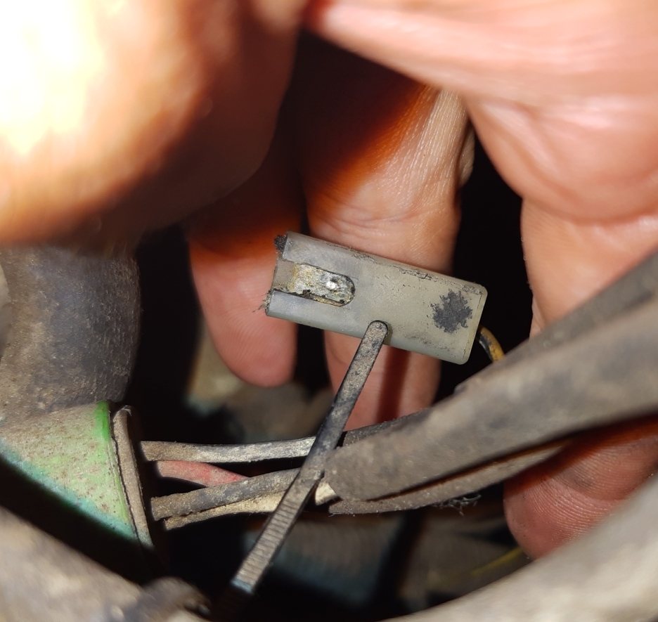 Anyway, I know this seems to be a common issue, so I've been digging and found the correct connector I'm 99% sure. The plastic housing is super cheap, but the special terminal is really hard to get, almost had to order 2000 of them, but I found a site that had high prices per unit, but I can buy the 100qty I'm looking for. I went out to my 86 to check to make sure the connectors I have matches the housing for an adapter.... and the connector has the slot on the side! It's a dual use connector, the slot side should slip right onto the button on the oil sender.