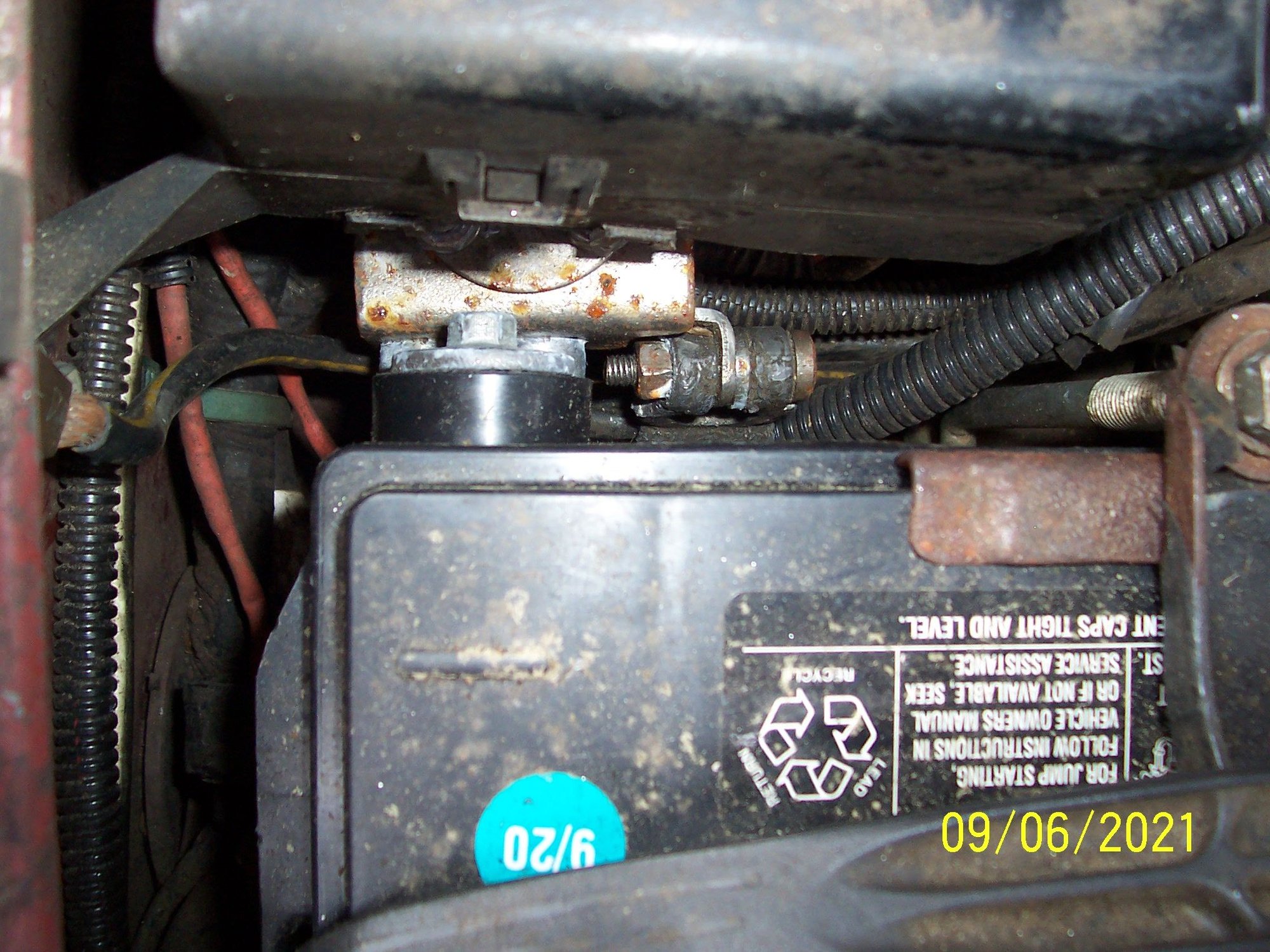 Super easy to remove the negative cables from the battery, too, should I need to work on something. Just loosen the wingnut off, no NOT the one behind the wheel , the one on the BATTERY terminals, pull the cables off, and move them aside. Same if I want to pull the battery out completely.