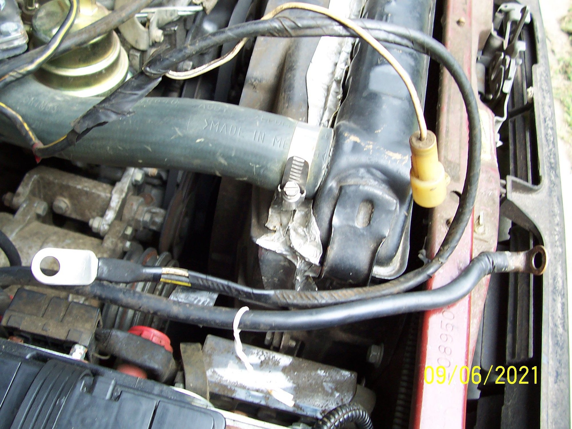 Since that comes off the main ground to the block there was a ring terminal bolted to the power steering bracket and From new that wire would be in the wire harness.