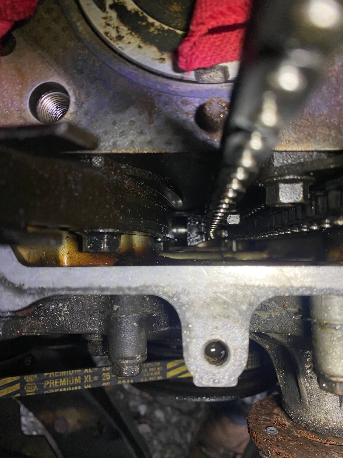 that looks like the original set. Full plastic on the right side guide and the weird brown toyota color. Why do you ask? Looks like there is a groove going on there. Chain is probably stretching out and starting to make noise. The rig is probably in need of a timing job