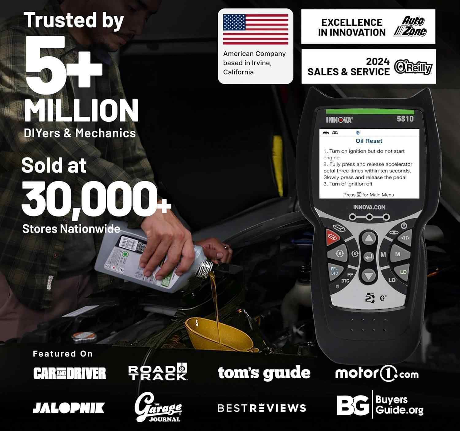 The Innova 5310 OBD2 Scanner helps you easily find the problem & fix the problem.