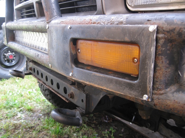 Cut out the turn signal sections of stock bumper and pasted them in between tubes of aftermarket bumper. $10 junk bumper from yard. It will get welded in.