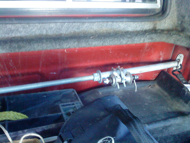 hose clamped a hub to each of the pipes, put the threaded rod in between with the nuts and washers, stuck the whole thing between the tie down points in the bed closest to the cab, tightened down. Worked great but now I have a cap so i cant fit bikes upright any more.