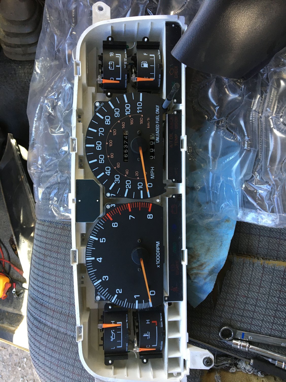Hi Co_94_PU here are some pictures of the cluster. You can also see the oil pressure gauge is on H without even having the cluster plugged in. Tach is on zero, but once plugged in goes up to 3-4k