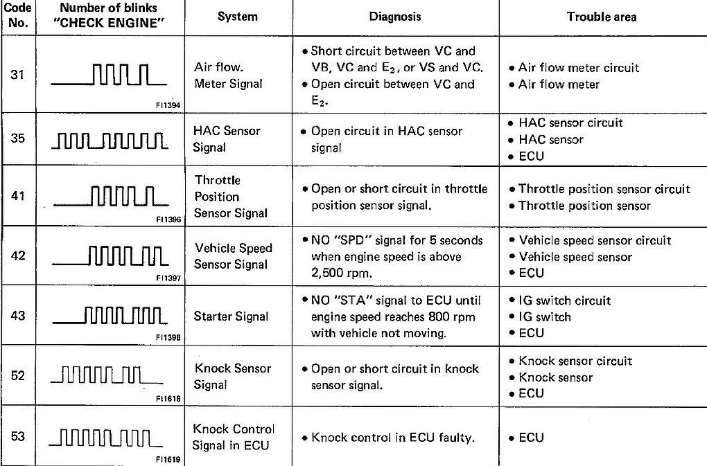 Thanks everybody for the Great help on the codes. I got rid of 24, 25, 27 right away when the mechanic replaced the CAT and believe it or not its two sensors. Seems that the CAT was out of date, 9yrs old and the sensors on it were not the right ones either so they were replaced and Smog Check passed with flying colours. Had to have one wire hooked up and as for the K/S it will be replaced at a later time. The truck runs great now otherwise. Anybody know who makes a good K/S for my 89 Toyota P/U?