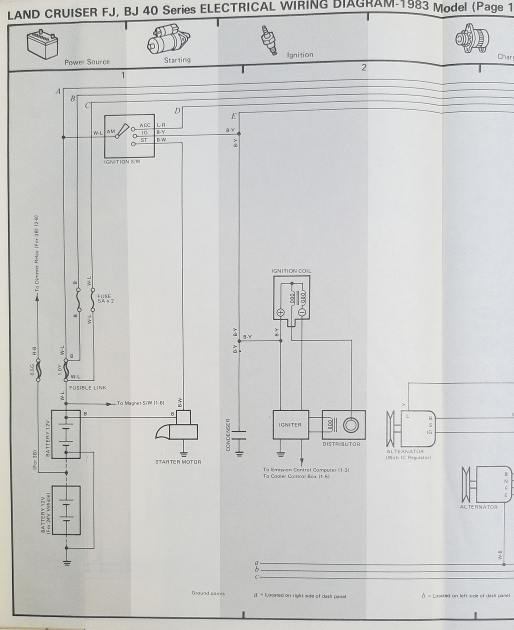 Hoping somebody has electrical diagrams for a 1982 BJ44.. Part of it is 12V, part is 24V, too confusing for me, and my mechanic wants the diagrams.. I'd also be open to buying any used harnesses out there, I'd use them as a pattern and just make new ones.. I know I need under the dash and under the hood, headlights have a short.. It's pretty common to pull these 4 cylinder diesels out and replace with V8 power, but I love the pulling power, handling, and mileage of this 6 seater..