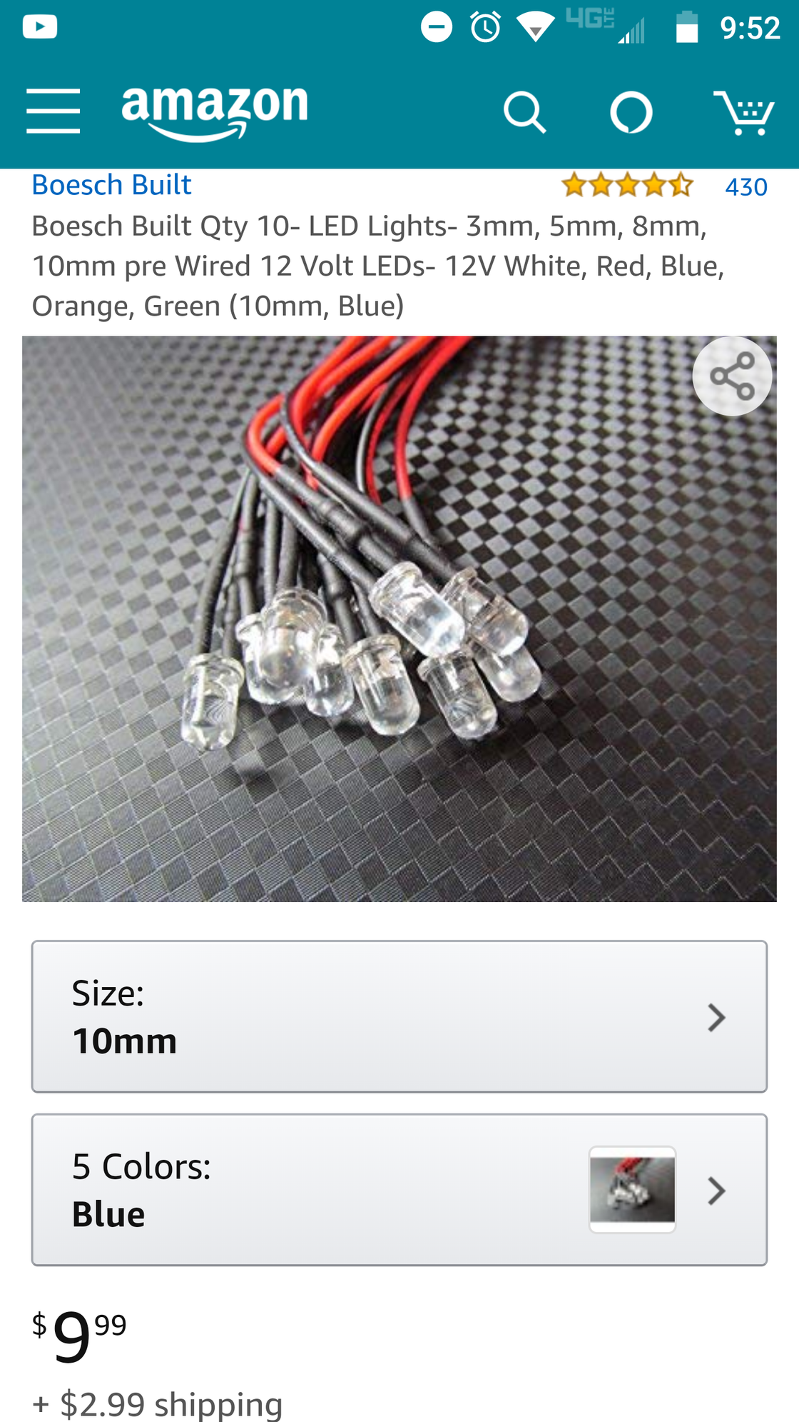 I ordered these 10mm LED's off Amazon to replace the two 194 bulbs that are supposed to illuminate the Speedo, fuel, and coolant temp gauges, but are so weak that I can't see any backlight during the day and barely see any light at night.