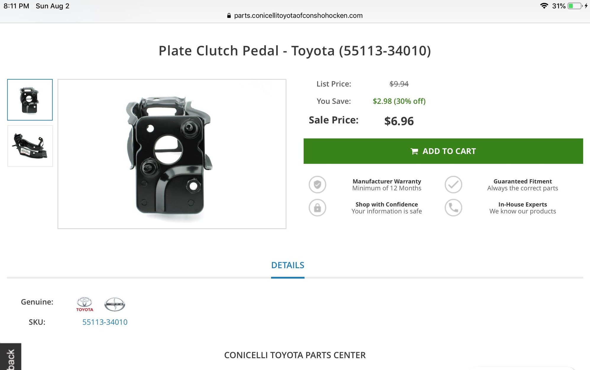 Conicelli Toyota is in PA and they have a very competitive online parts business.