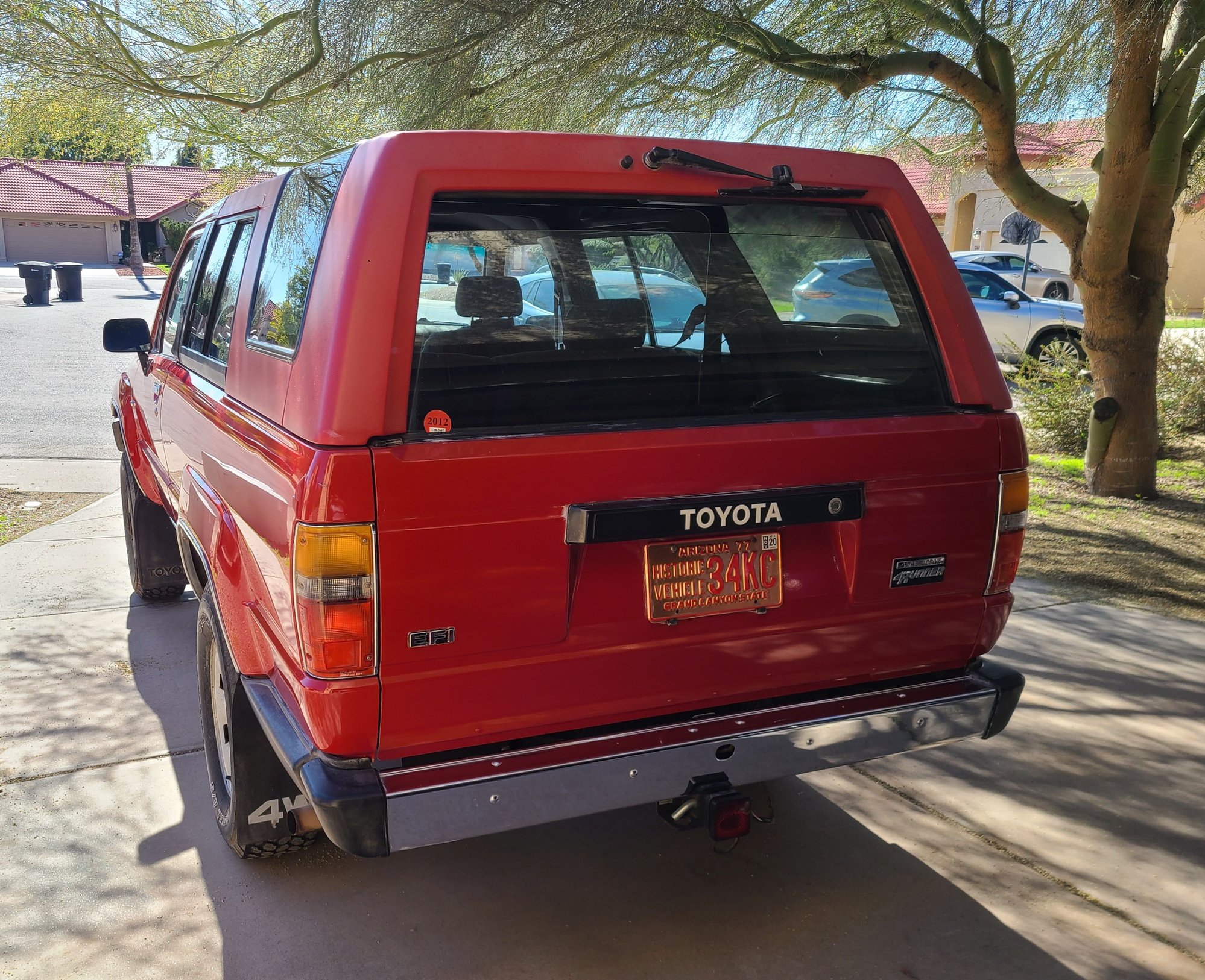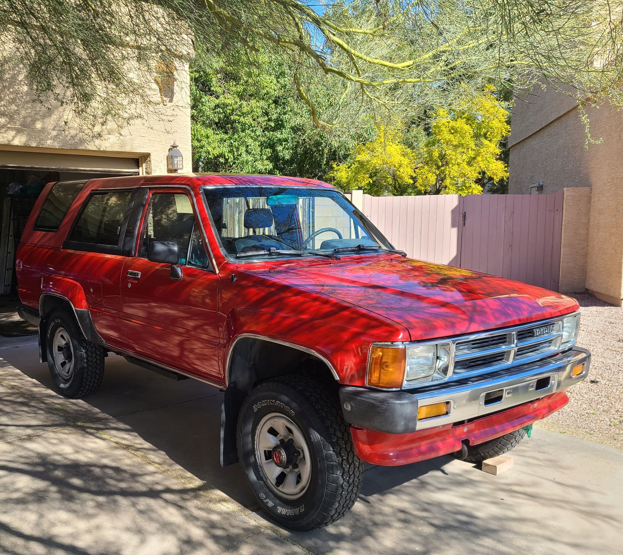 It's time to part with my '88 4Runner. I'm the original owner, no rust and paint is in great shape, 192K total miles with reman engine at 140K. 5 spd manual, towing and chrome package. Just replace PS pump and alternator and passed emissions. Curious what folks think I could get for it. A few minor things to fix on it like the intermittent wiper relay. Also let me know if anyone is interested.