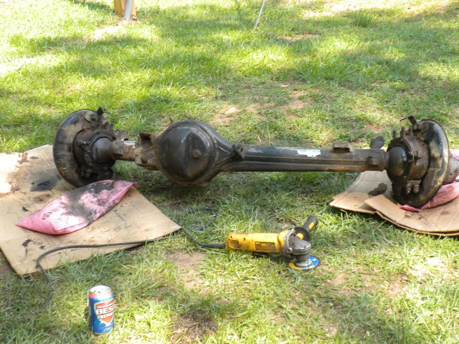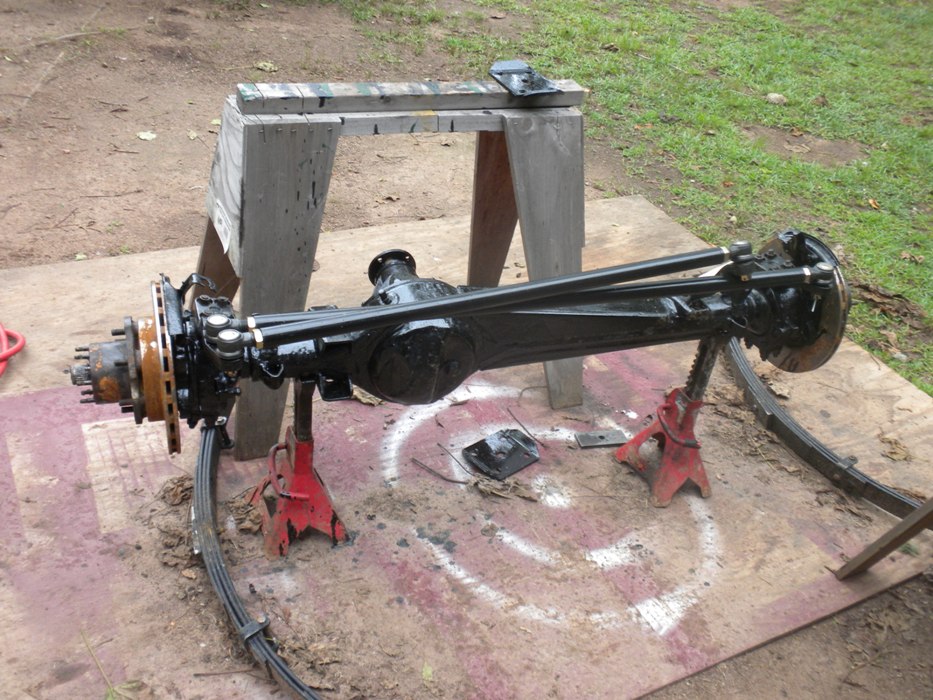 axle build pics. trussed up and high steer added, and i put 87 4runner calipers and rotors on. those 85's warp too bad.