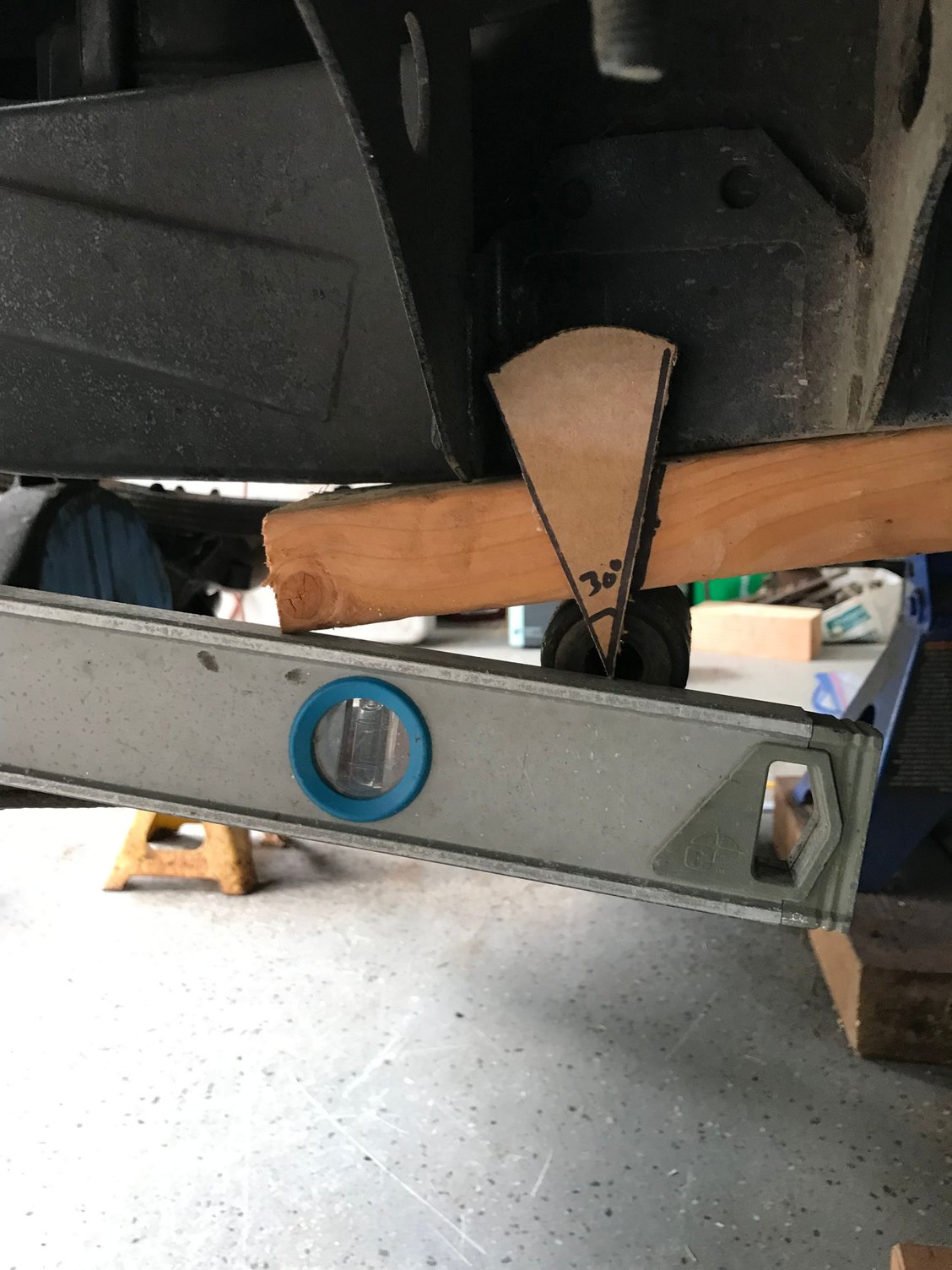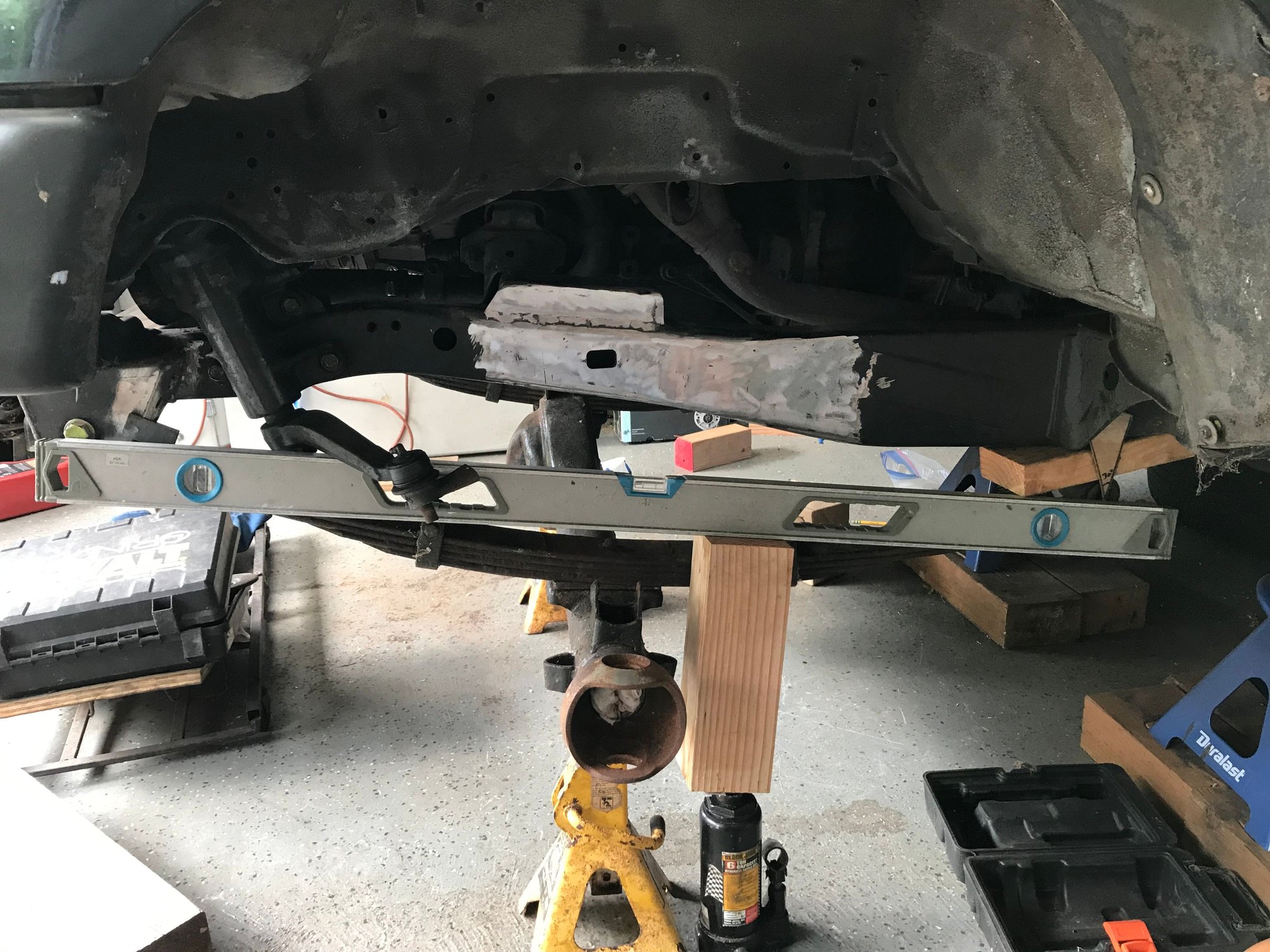 You can see too, with the straight line of the level, that when those springs go flat, they are going to get shoved RIGHT up into the steering box.