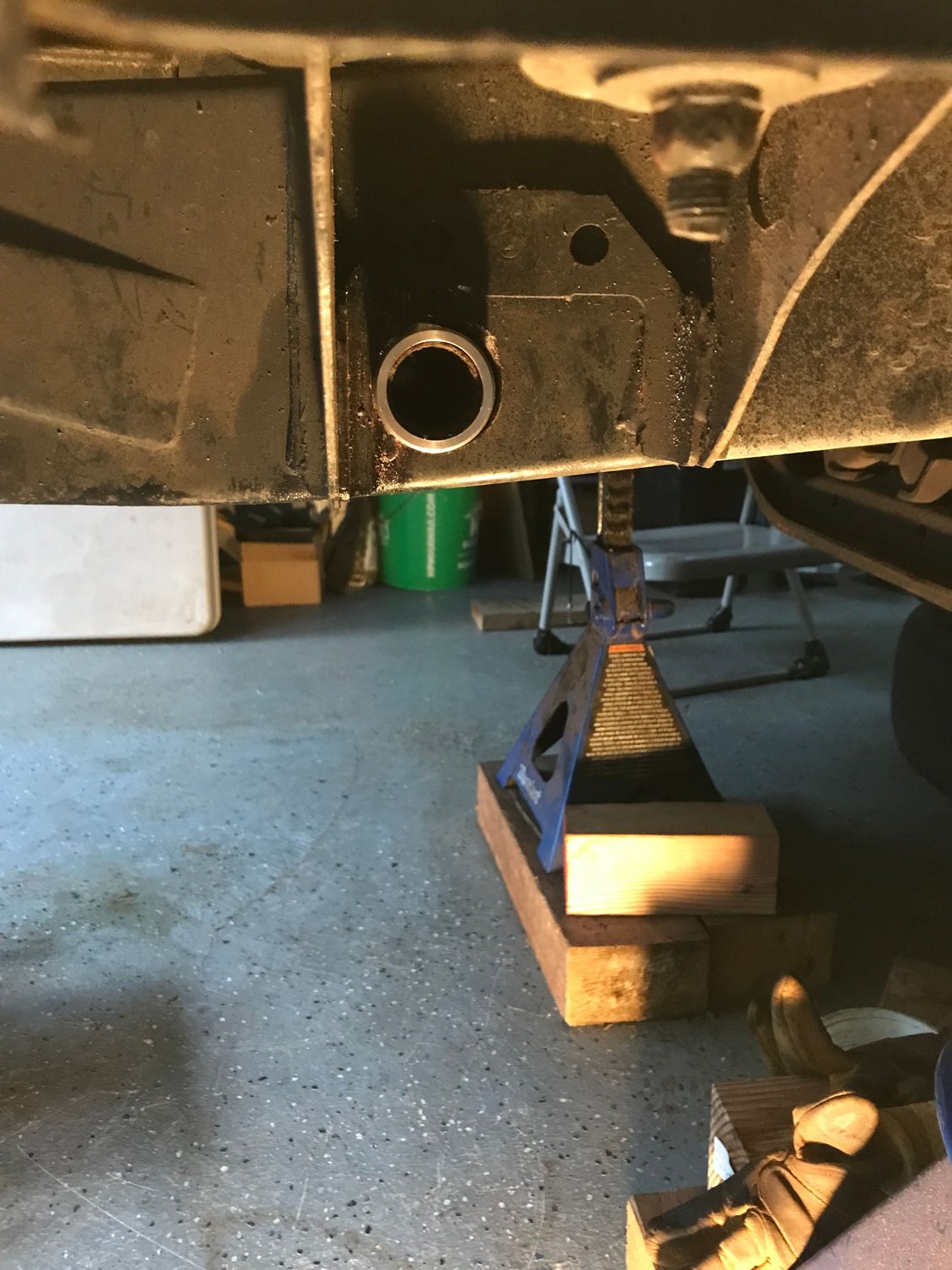 My welder buddy says we should take that top side of the cross member off (that we left on) as it’s plenty strong and the holes on top is a rust potential