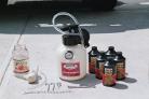 This mytevac reservoir looks like it would hold over a gallon of waste fluids. Pumping it's handle creates a vacuum inside. You connect the tube to the bleeder valve and open valve. It sucks the fluid out of the brake cylinder, drawing from the master cylinder. In the shop, I used to suck all the old fluid out of the master first and then wipe out the gunk clinging to the sides of the reservoir. Refill with fluid, and bleed in order at each wheel. Still have to keep checking the reservoir, but it doesn't get all over the floor.
