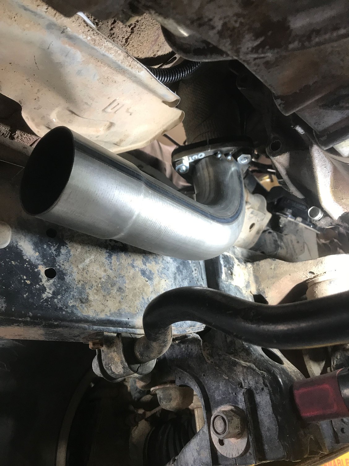 This was the last exhaust picture I took. The back half tacked together. This day turned into a very late night. I had already had the truck running at this point and it was my ride home, so documentation fell by the way side.