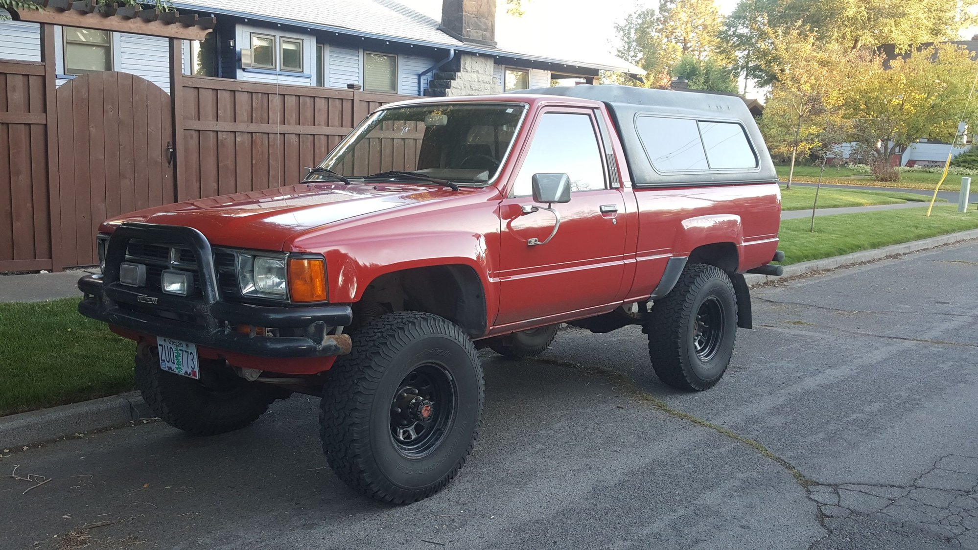I spend several years searching for a truck this clean. I've only owned it for about 3.5 years, but I've purchased 3 other toyotas since this one haha. I'm wrapping up building a house by myself, have a chinook project to undertake, as well as I really would like to get my Scout back on the road. Oh yeah, and a baby on the way. So unfortunately, in addition to needing the funds, that means the Cherry Tomato needs to go. Someone will get lucky with this one (in my opinion). Bought this from the second owner (the original owners friend) who purchased it in 2004. It came from Jerome, Oregon - way eastern Oregon and was used as a hunting truck. I'm pretty sure by the condition it was probably garaged for a period of it's life. In 2004 it moved to Bend, OR and that's where it is today. This was a very unique build for 1985. From the factory - NO SMOG equipment. This is how it came stock, no smog pump, no egr, no nothing. The only belt up front runs the alternator and waterpump. No power steering, no A/C compressor, stripped down, basic and super easy to work on. It even has the original distributor boot - I never knew those even existed.