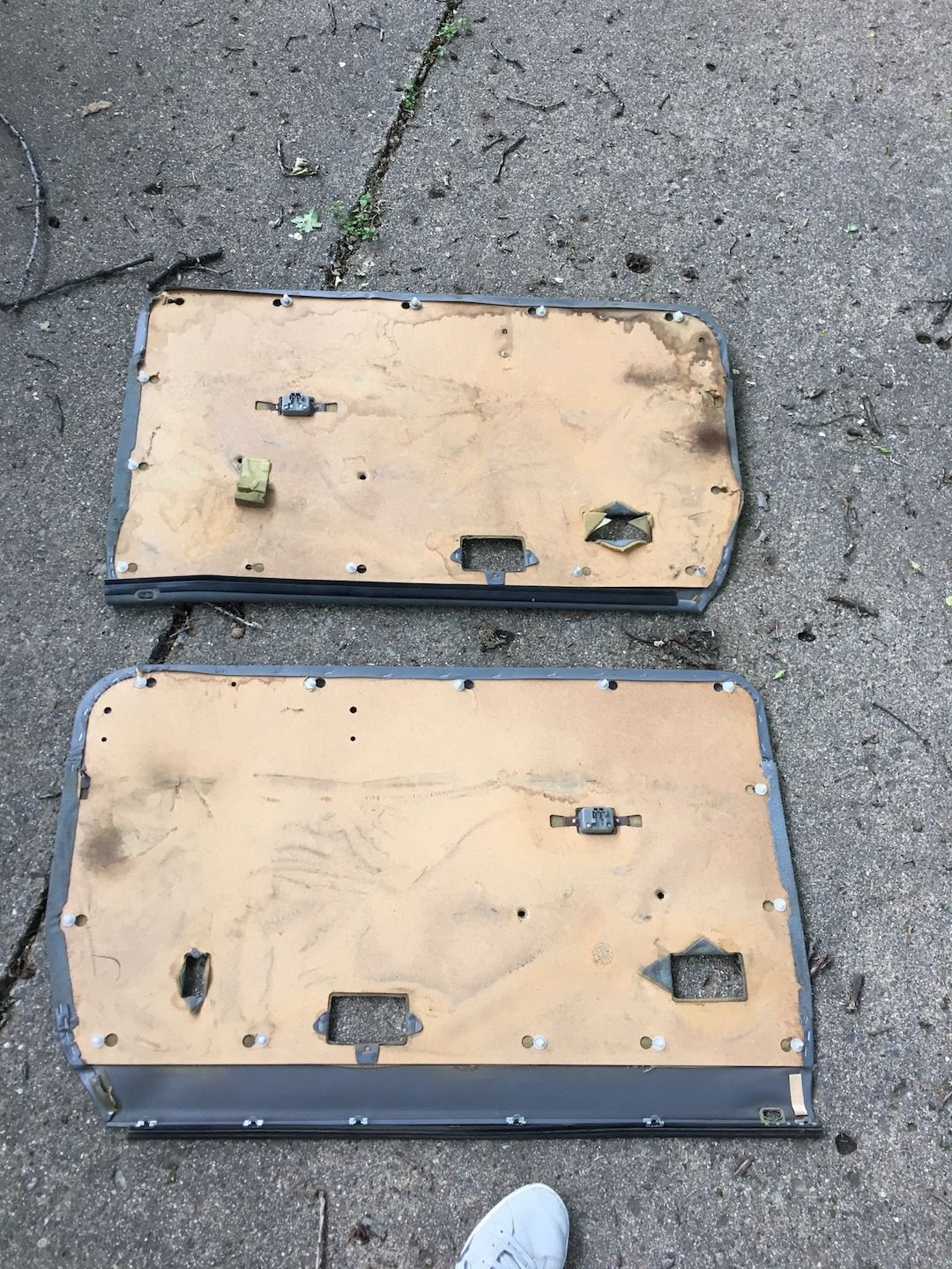 Door panels are in an above photo. I have the back seat panels too, I can get you a picture of those. PM me your number and I can text you some. The headliner is in good condition - it has a sunroof though, if that matters to you. Tailgate motor is gone. The dashpad and inclinometer are on ebay as one unit. I have the rest of the dash though. Its all in good condition except the radio trim is cut. The center console is for rear heat. The armrest pad for it is toast.