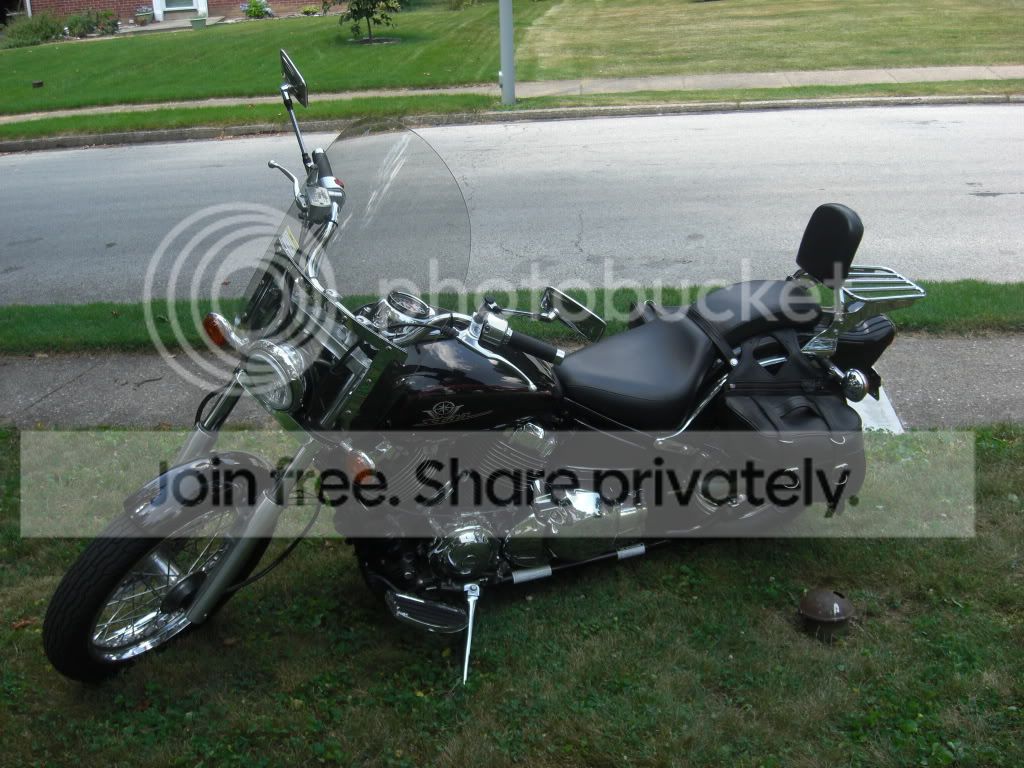 Oh snap this is an old thread. Oh well 99 yamaha v-star 650. This thing was great for putzing around town but i never felt like it had enough to get me down the highway (Me=230lbs) Anyways had vance and hines pipes, jetted, windshield, foot rests, sissybar, and enough saddlebags to pack a case of beer in. Dont have it anymore but the money from it was my down payment on my 04 taco so im happy.
