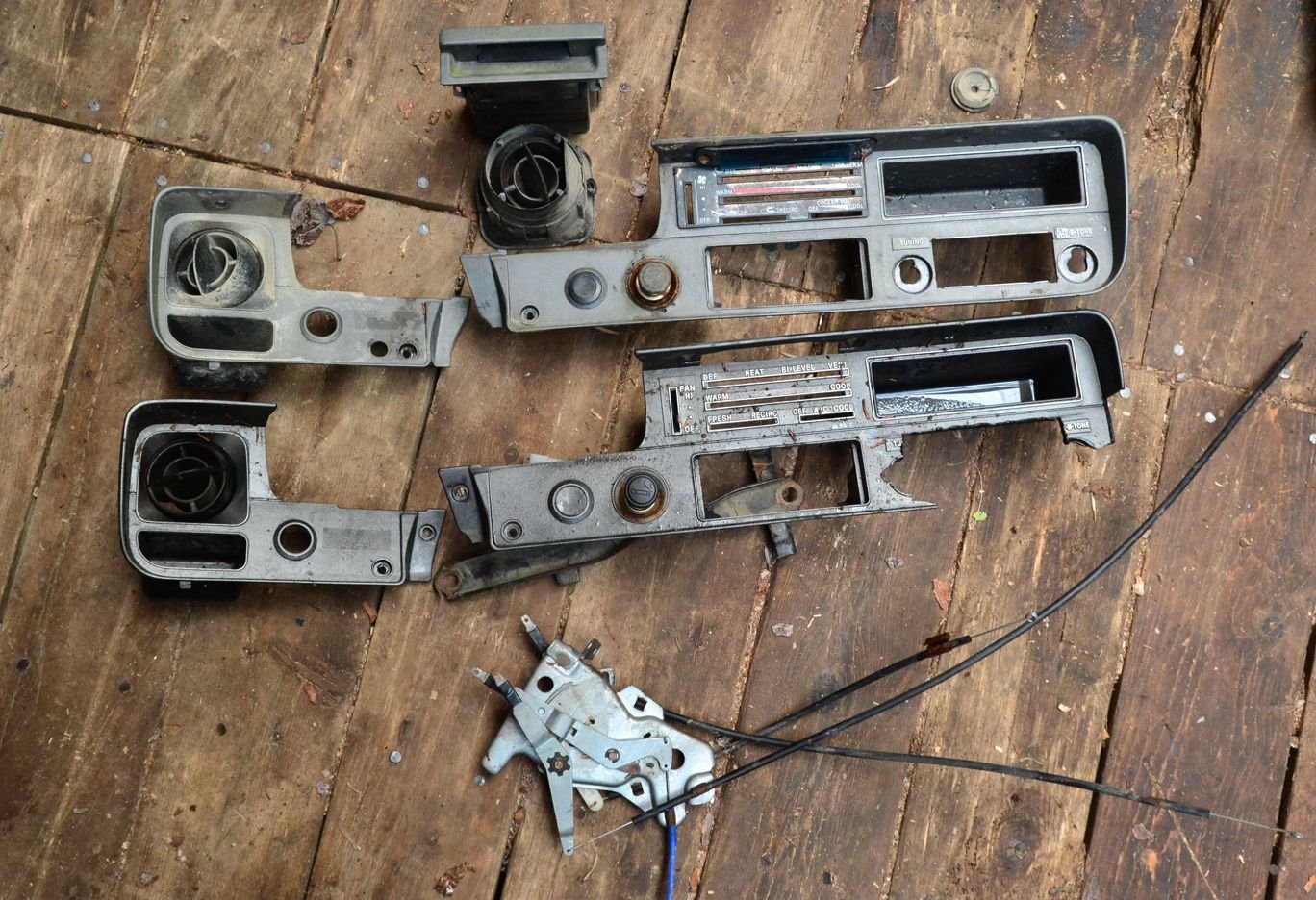I have mediocre grey door panels, I'll take a look at them. Door lock bezels? Not sure what those are .... window cranks, the handle or the regulator. Pretty sure I have both. And I do have seat belts, for buckets or bench?