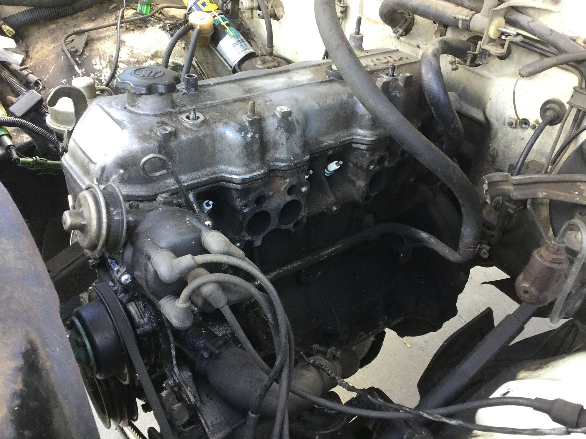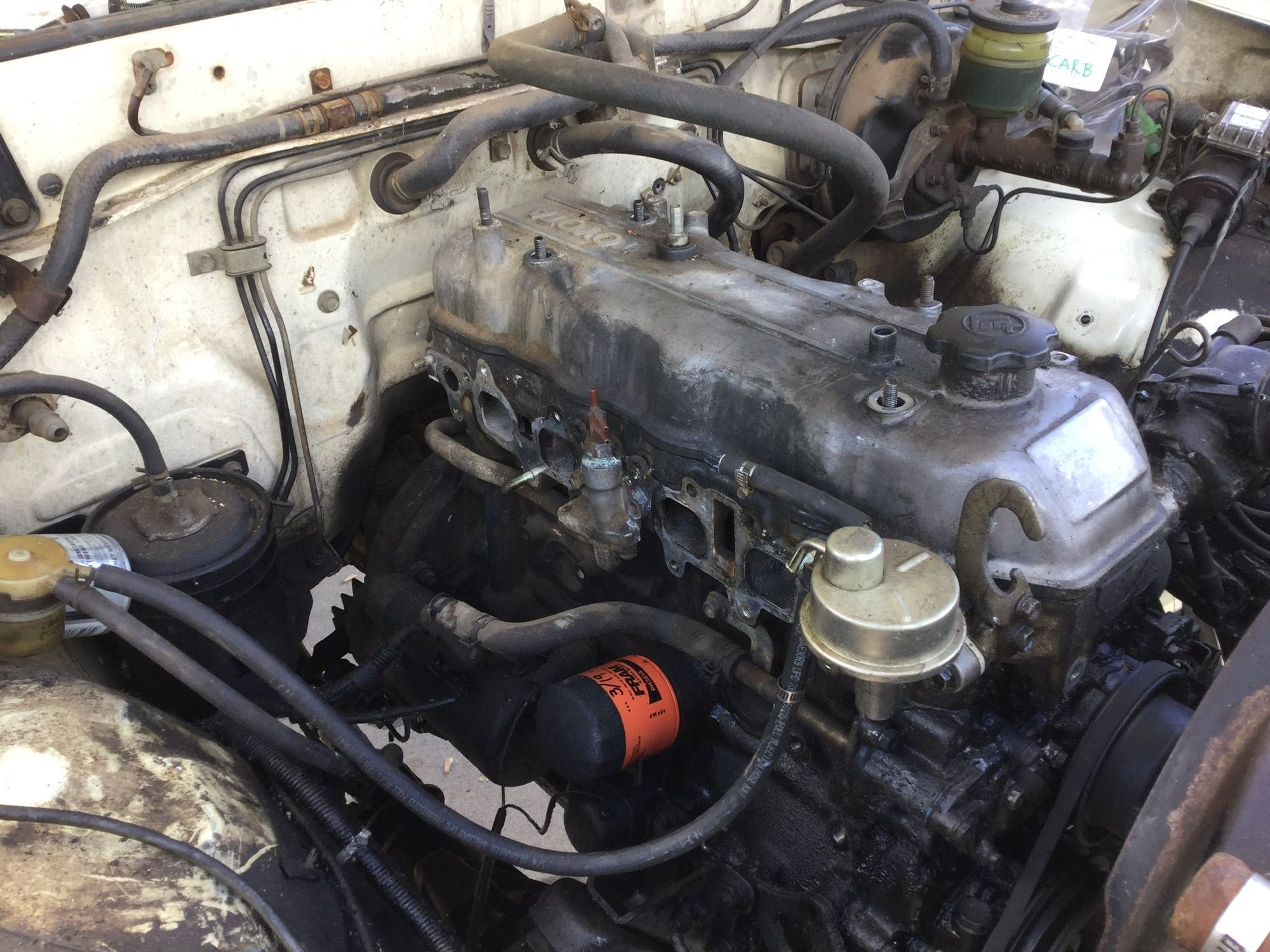 What’s under the hood? A well-oiled 22R...PO said oil had been leaking from a missing bolt for quite a while before it was noticed, but didn’t tell me which bolt it was...more on that later.