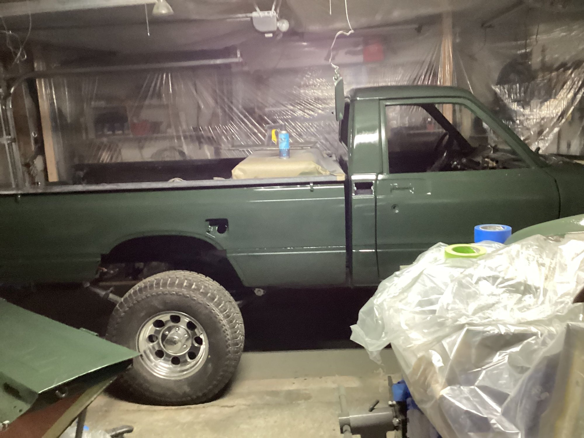 Not much visible progress lately. Just working through KawaZX636’s superb Desmog Tutorial and the FSM in as much of an orderly fashion as possible to get things reassembled. Many items accomplished and many yet to do. Here’s a few pics. Instrument panel, heater core and new speedometer cable went in today. Feels good to get started on the interior. Current state of the motor install. Just verifying no dash pieces are missing. The dash pad came new from a dealer, far left and far right pieces from eBay, middle section from a 3D printer/seller and the glove box came with the truck. SEM paint sounds like it’s pretty good so now it’s time to buy a can and standardize the dash components color.