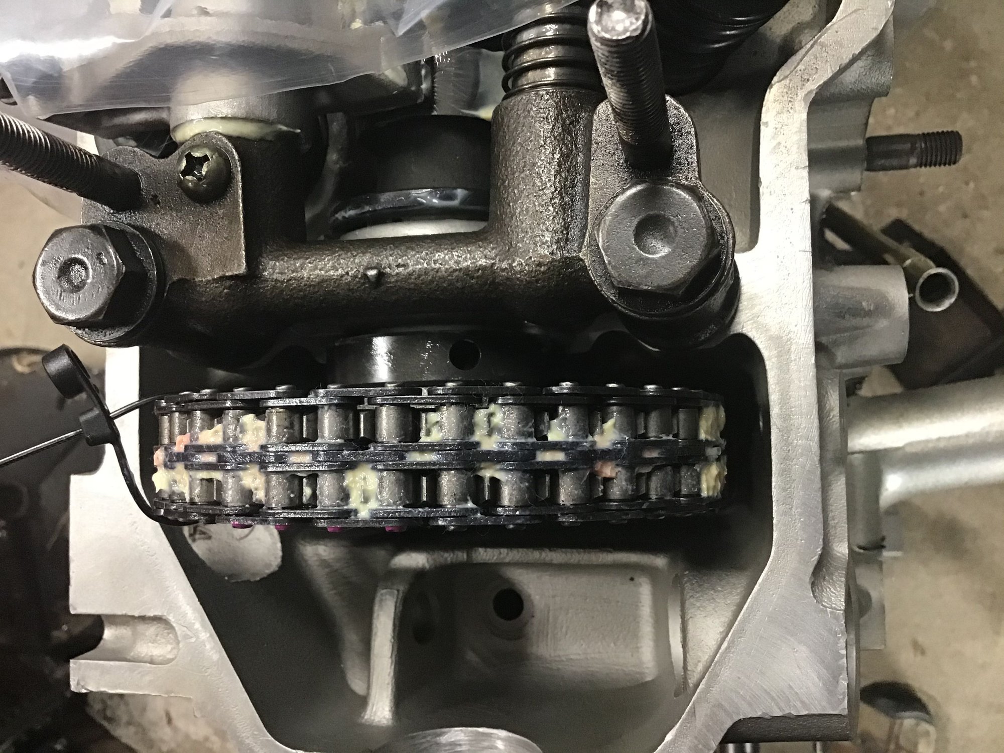 Little bit of work done today. The timing chain is assembled but the bad news is I can’t find my oil pump drive spline that sits on the crankshaft just in front of the crankshaft timing chain sprocket. I’m hoping it’s at the machine shop. Anyways here’s a couple pics before I got stalled.