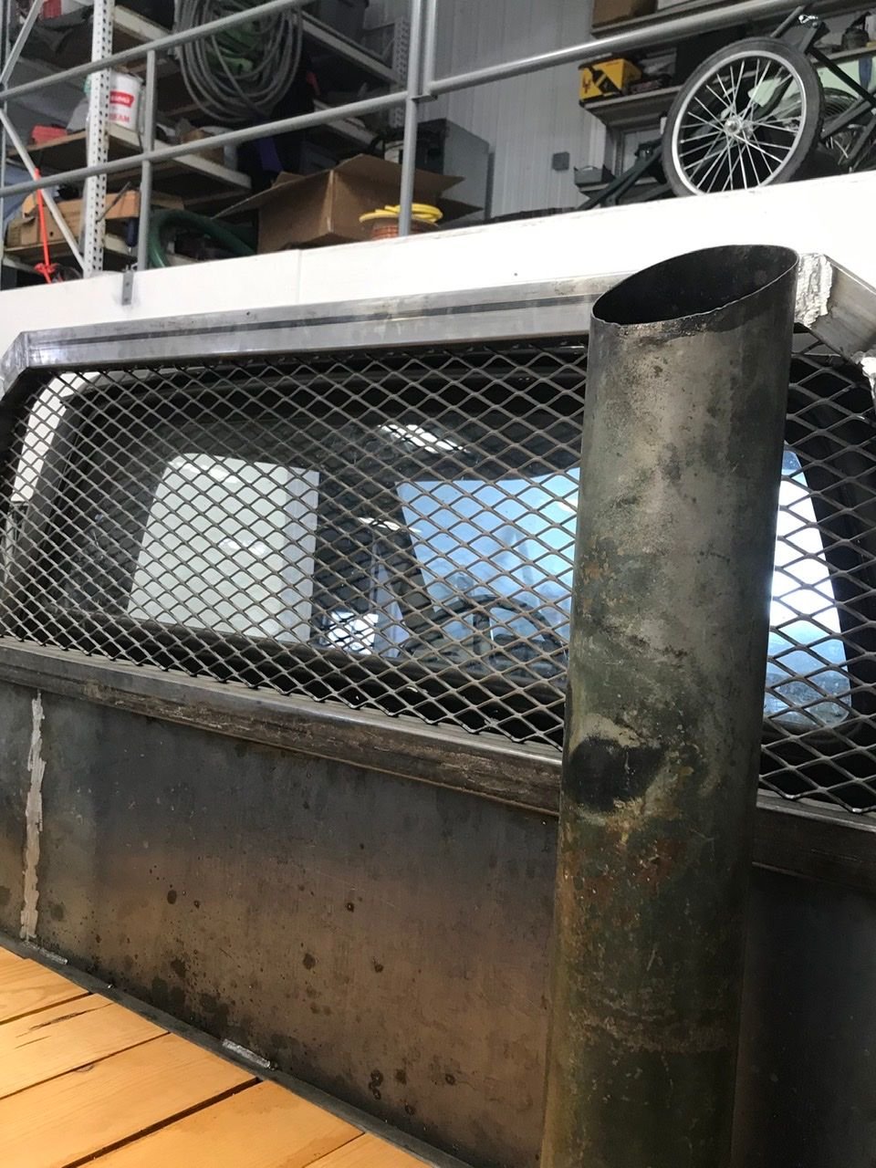 this is the plan for the exhaust. Picked up a 5” straight miter cut stack, I’ll paint it black. It’s a diesel, so I have to have a stack right!