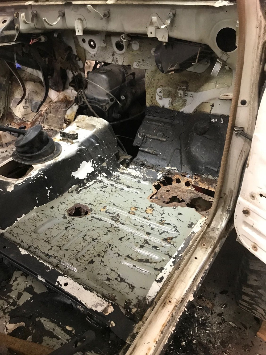 Formed some floor patches out of sheet metal. They came out pretty good. I riveted them into the floor. They are thicker metal, 14 or 16 gauge i think so I’m not worried about strength. I’m going to bedline the floor.