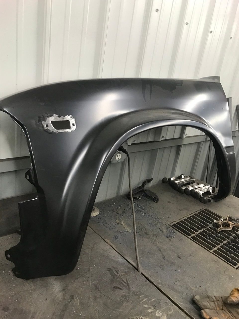 Little update on the project. No school so I’ve had a lot of shop time recently... I did some work on the brand new fenders I bought. I am going to delete the side marker light and also the toyota badges, so I welded up all of the holes. They came out pretty good. With a little body work and filler they will turn out great I think.