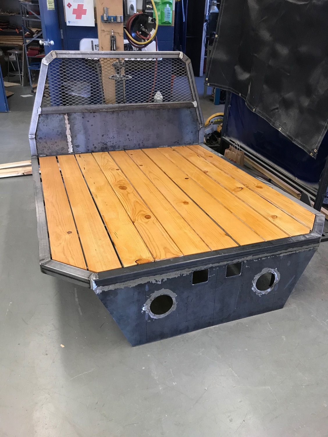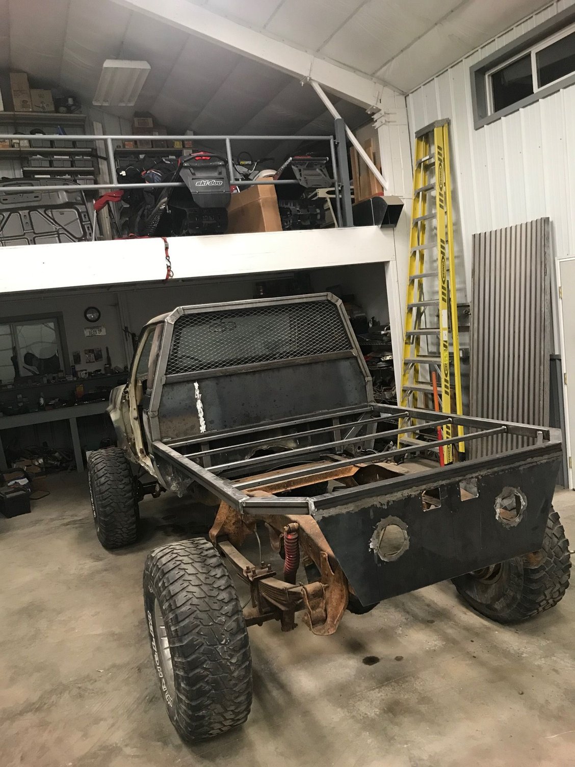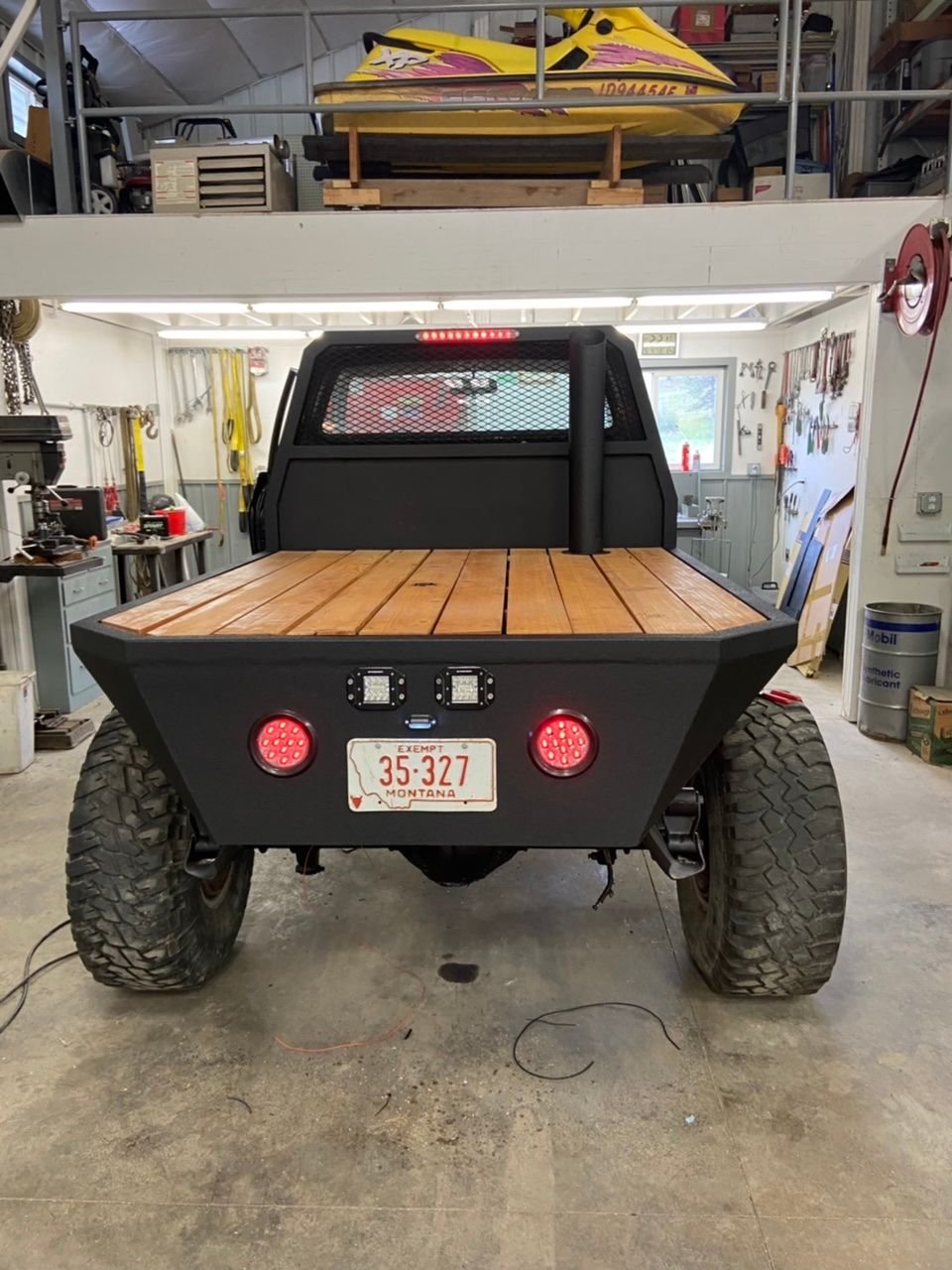 Been getting a fair amount done lately. Started her up for the first time about a month ago, the om617 ran great after sitting for a couple years. Among many other things, I raptorlined the bed, got the lights in, and have been making custom aluminum dash/gauge panel pieces. I really am excited about how it is starting to come together.