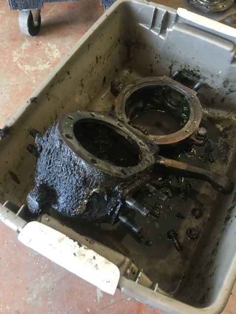 Everything was coated in the gear oil grease stew so I pulled apart the hubs and left them to soak
