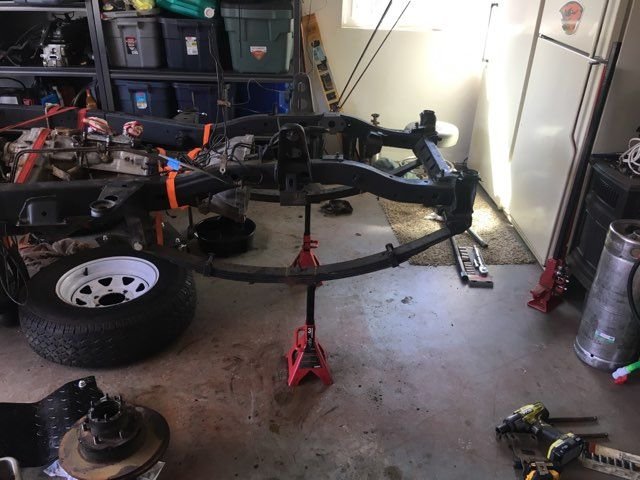 Ok bit of an update. After I pulled the axle I cut off some of the unnecessary brackets and then painted the axle. Bolted it back up using Marlin crawler ubolt flip kit, which did not fit (the spacers they sent aren't large enough to make up the difference between the frame tube, and the leaf spring eye. It's close so I'll probably just throw in a washer to make up the difference.