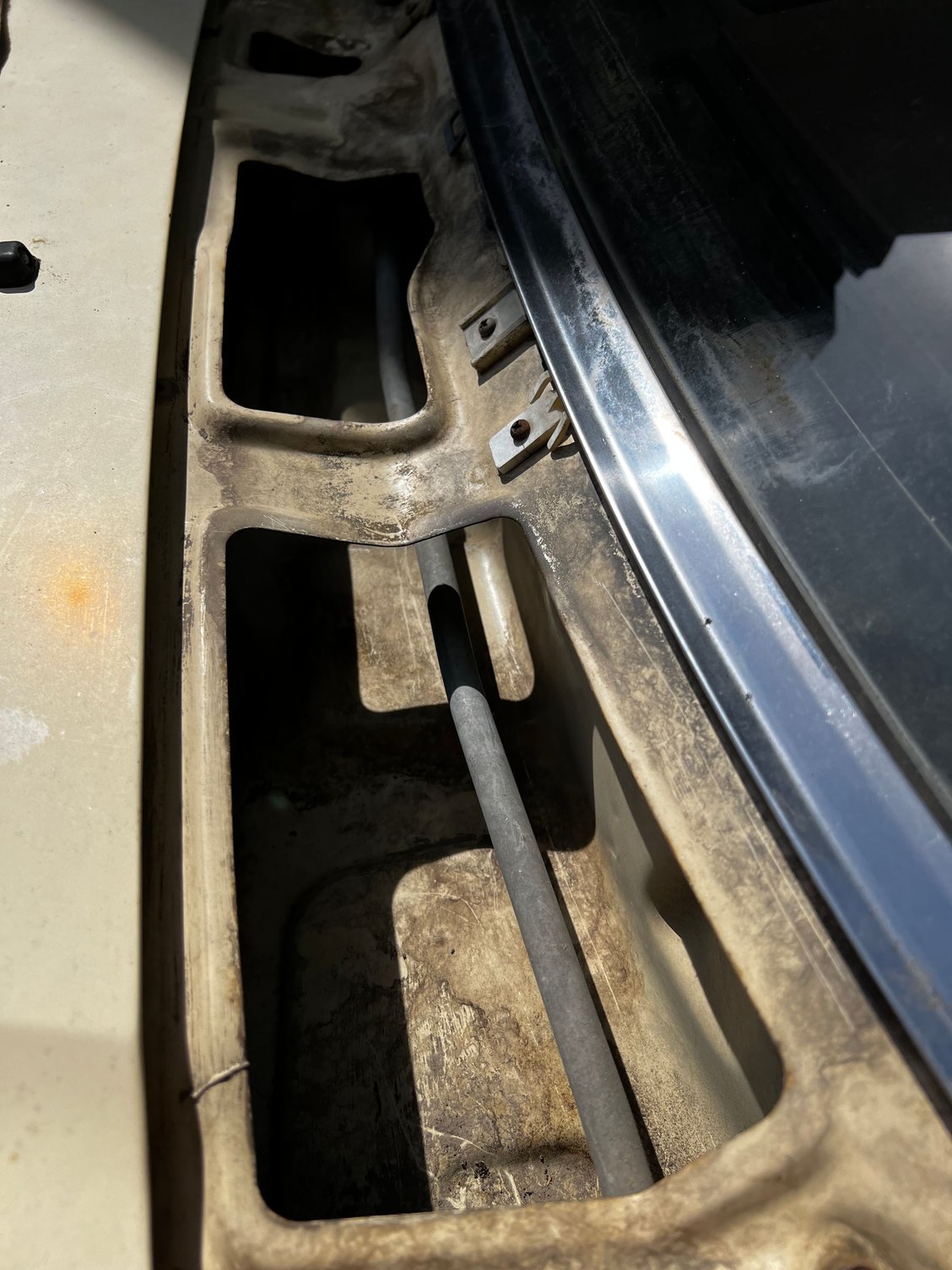 Today I removed the wiper cowl and did vacuum of that area and removal of leaves and walnut shells......I was really happy that there are no signs of rust and it just needs a good power wash left. I removed the front grill and broke some of the old grill clips which I ordered on Amazon. Replaced the front headlights so now both of those work, both high beam and low beam. After cleaning up the front radiator support and front grill I re-installed the grill and was really happy with the results.
