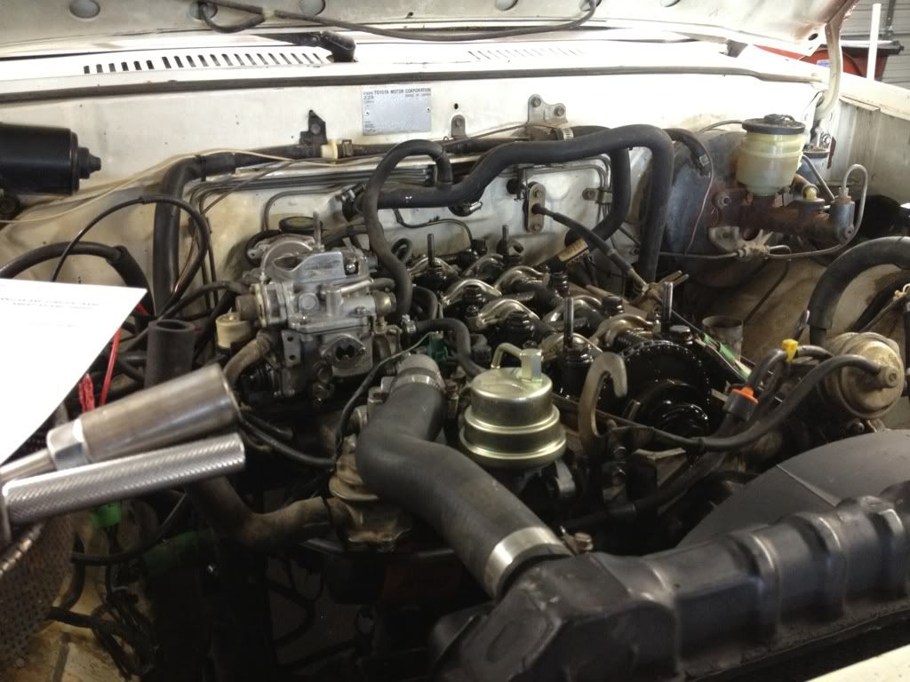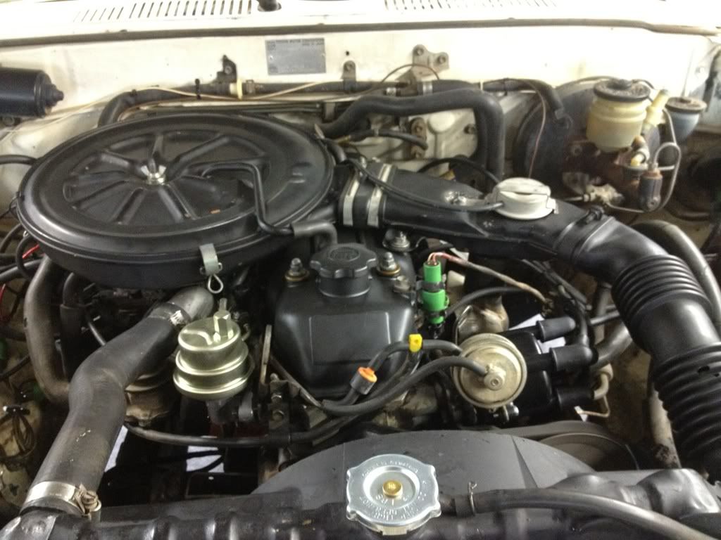 So good and bad news. Good news first , she runs and motor sounds mechanically good , no tics / knocks / rattles ect . But it ran pretty poor. Idles half decent , but don't rev up too well. Got a huge vacuum leak under the intake manifold. I guess the 28 year old intake mani gasket threw in the towel. So looks like I'm gonna be getting a intake mani gasket kit. While I'm at it im gonna do the valve cover gasket and polish or paint the cover. Was kinda cool creeping across the back parking lot to actually drive it in the shop instead of pushing it. Although I had to use the ebrake as my brake cause all my lines are off. Hopefully my box from trail gear gets here tomorrow !!!