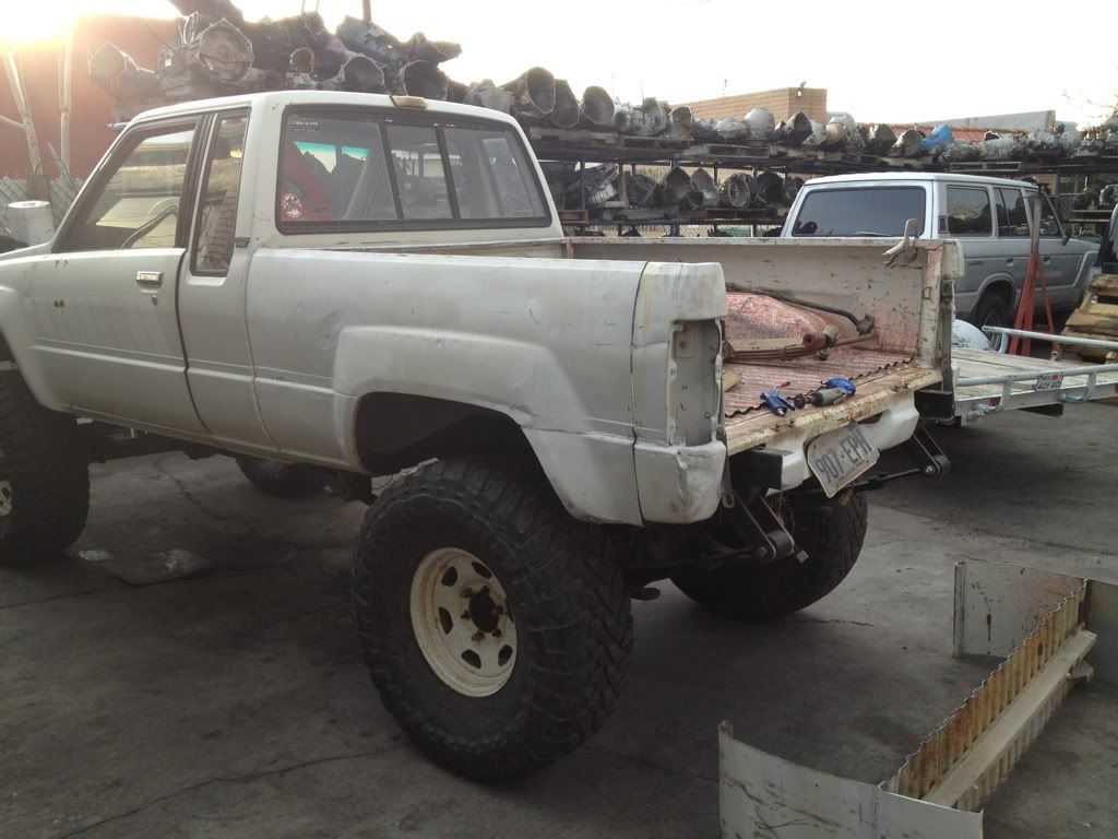 Back to work after the newborn. Pretty weather in Reno so I only had a chance on lunch break to trim a little and tack rear section in place. Can't wait to finish trimming and welding . Need to pick up some square tube next week and box in frame. Gonna cut the rear sides below tail lights and bend some tube to wrap around and tie in frame for some protection.